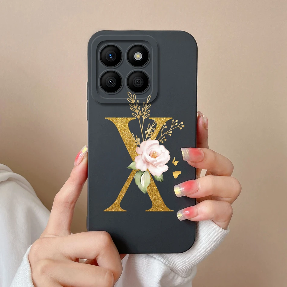 Comprar Funda protectora de silicona líquida para Honor X8B, carcasa con letras brillantes de A-Z, suave y delgada, anticaída, para Honor X8 B