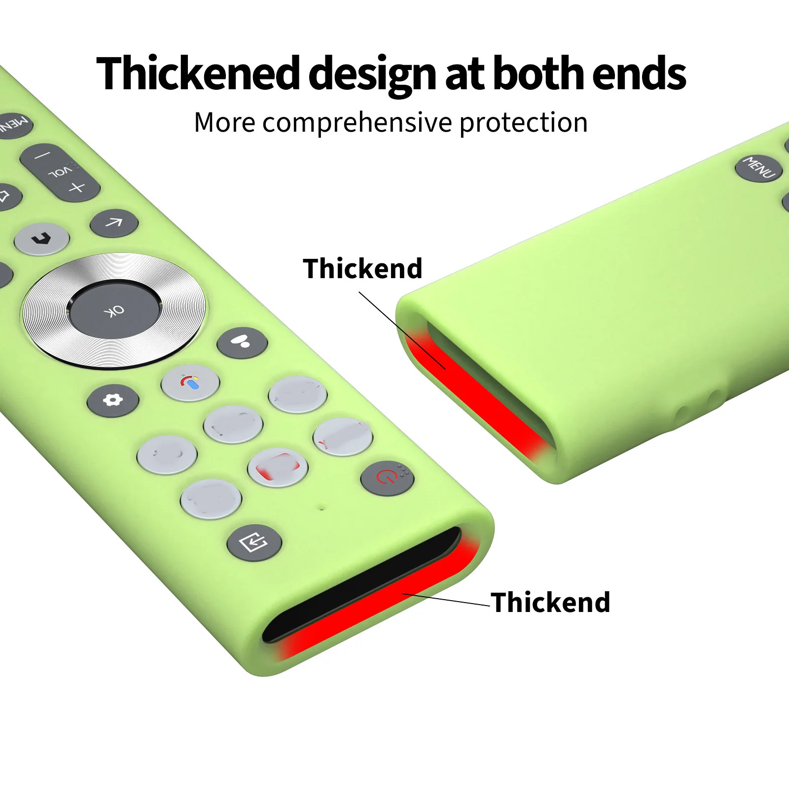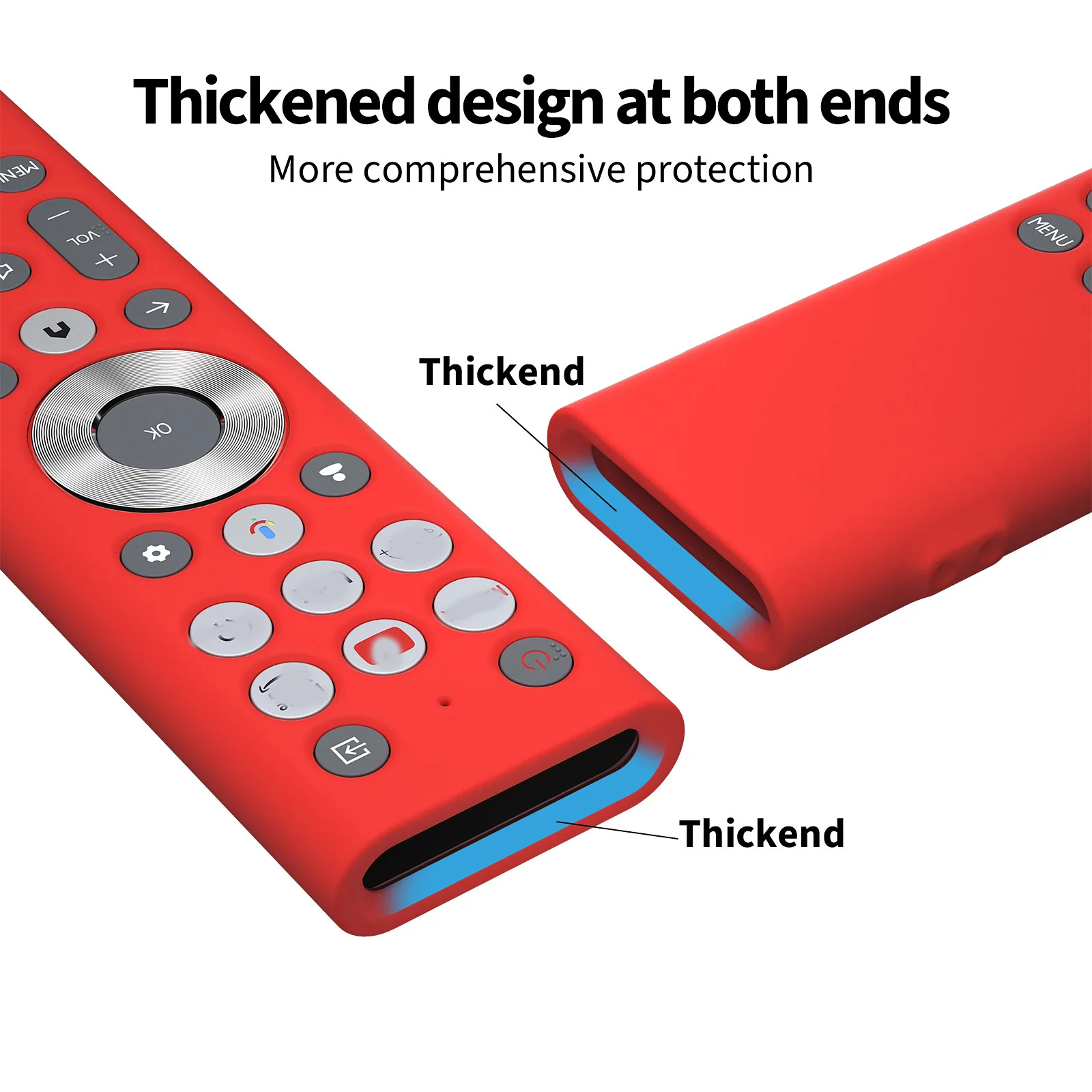 Protect your remote control with our silicone remote cover. It is made of high-quality silicone that is soft, durable, and ergonomic. It fits snugly on your remote and provides a comfortable grip. It also prevents scratches, dust, and shocks