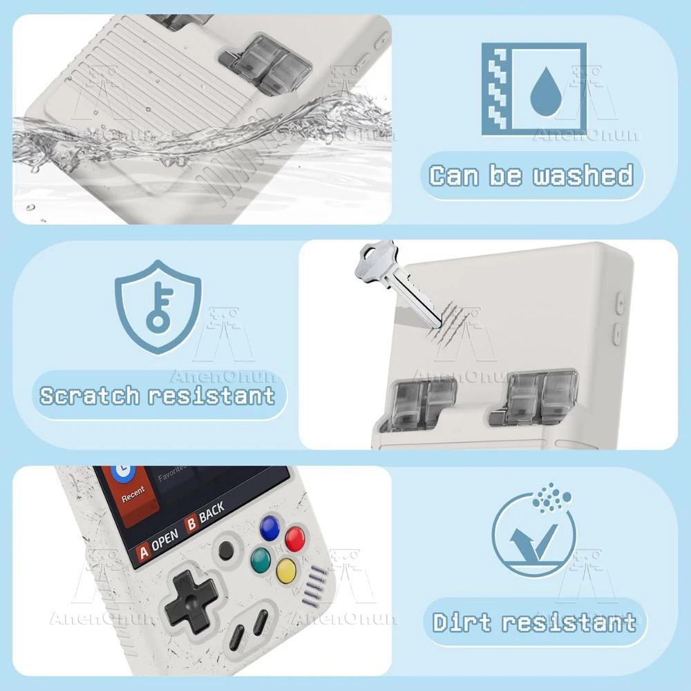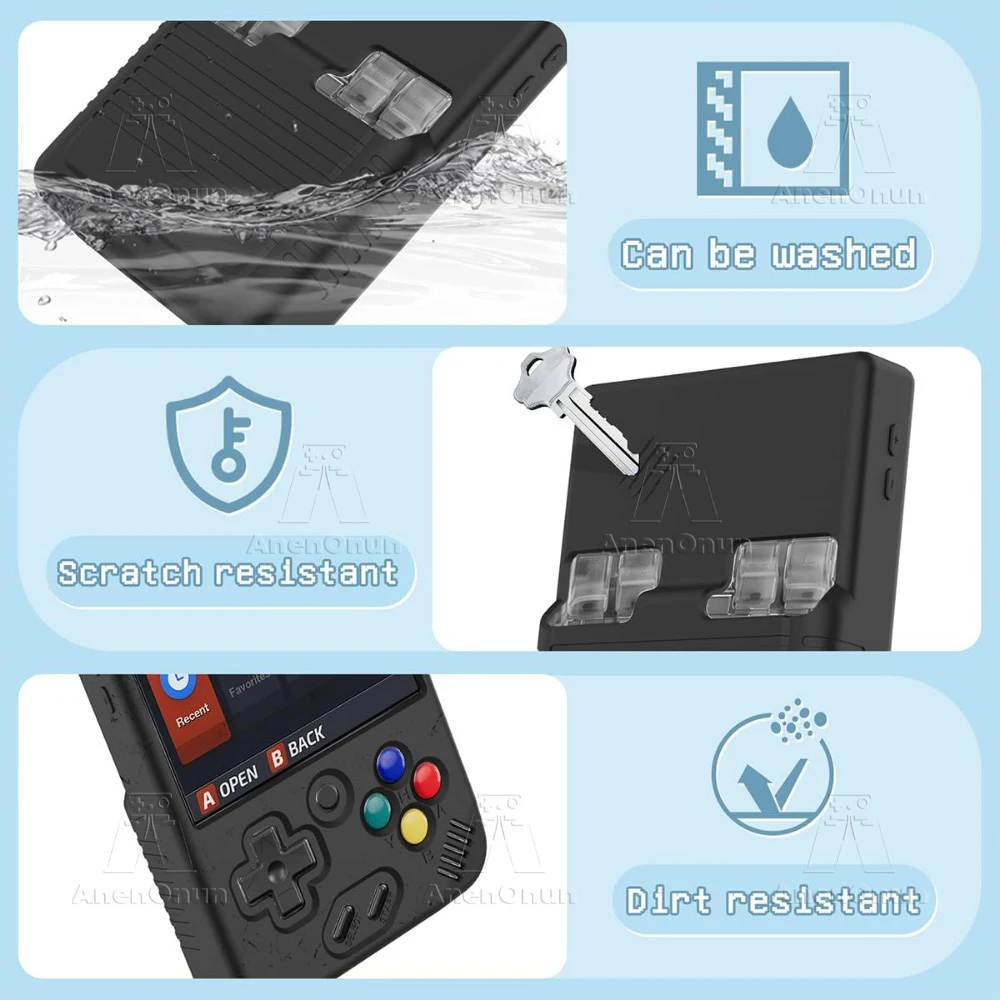 Protección completa: adecuada para Miyoo Mini Plus. Fabricada con material de silicona que absorbe los golpes, es flexible y antiarañazos, esta funda protege su dispositivo de golpes, caídas, rayones, polvo y huellas dactilares cotidianos.