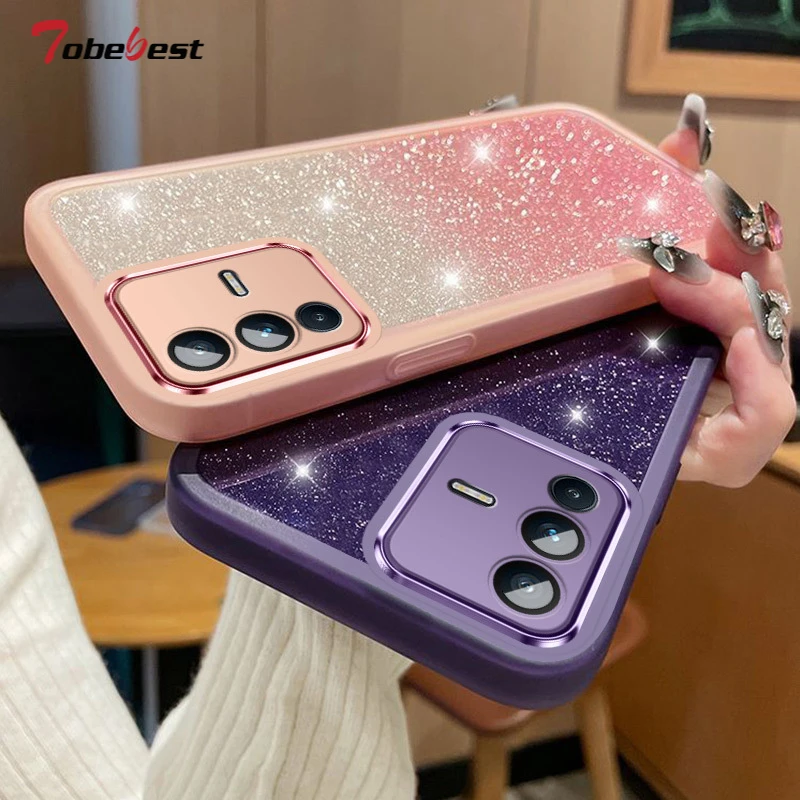 Funda de silicona con protector de cámara con purpurina ostentosa para Vivo S12 Pro S18 S10E Funda trasera suave
