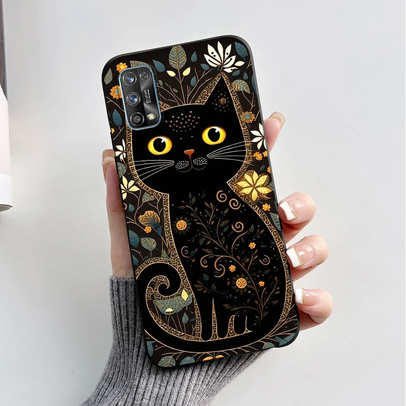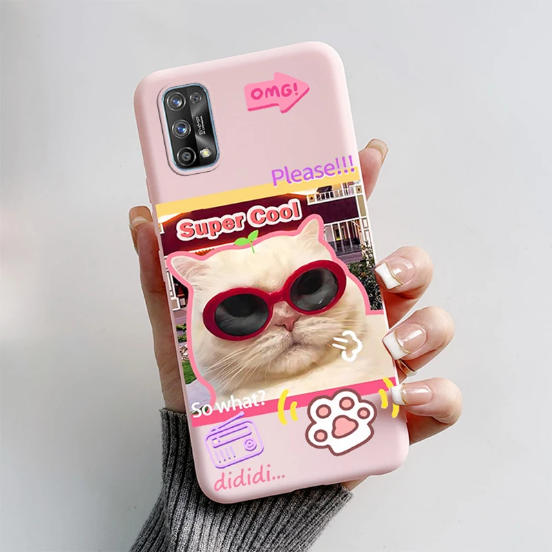 Comprar Funda protectora de silicona para Realme 7 Pro, carcasa trasera con dibujos de gato, parachoques