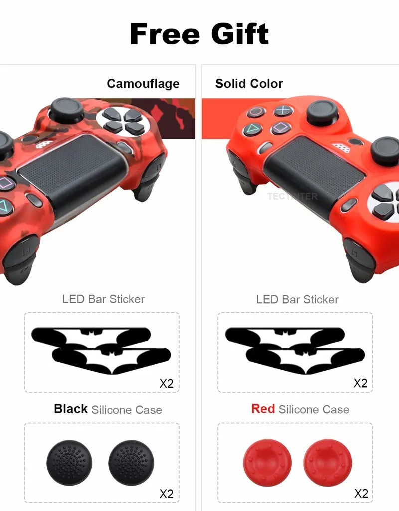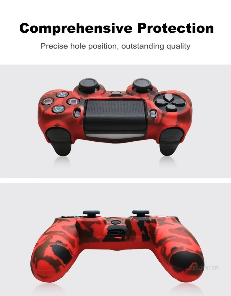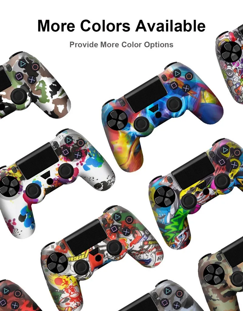 Previene cualquier daño al controlador PS4 por golpes y rayones.La fricción de silicona proporciona un agarre cómodo, evita resbalones mientras juegas, no más preocupaciones por las manos sudorosas.Muy fácil de instalar y quitar, se adapta perfectamente al controlador PS4, no afectaría ninguna función.Camuflaje con tecnología de impresión por transferencia de agua en el controlador PS4, aspecto más moderno.
