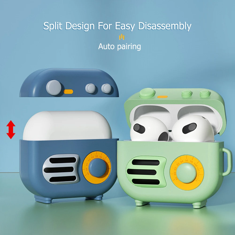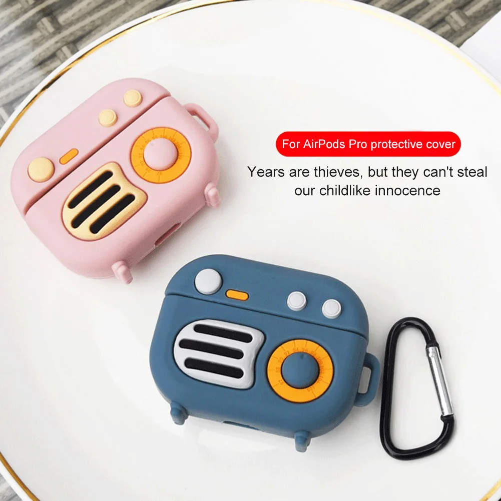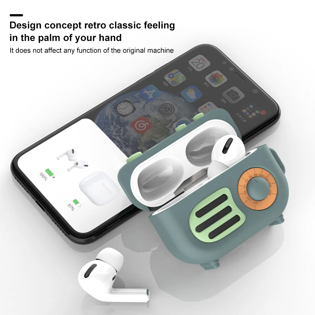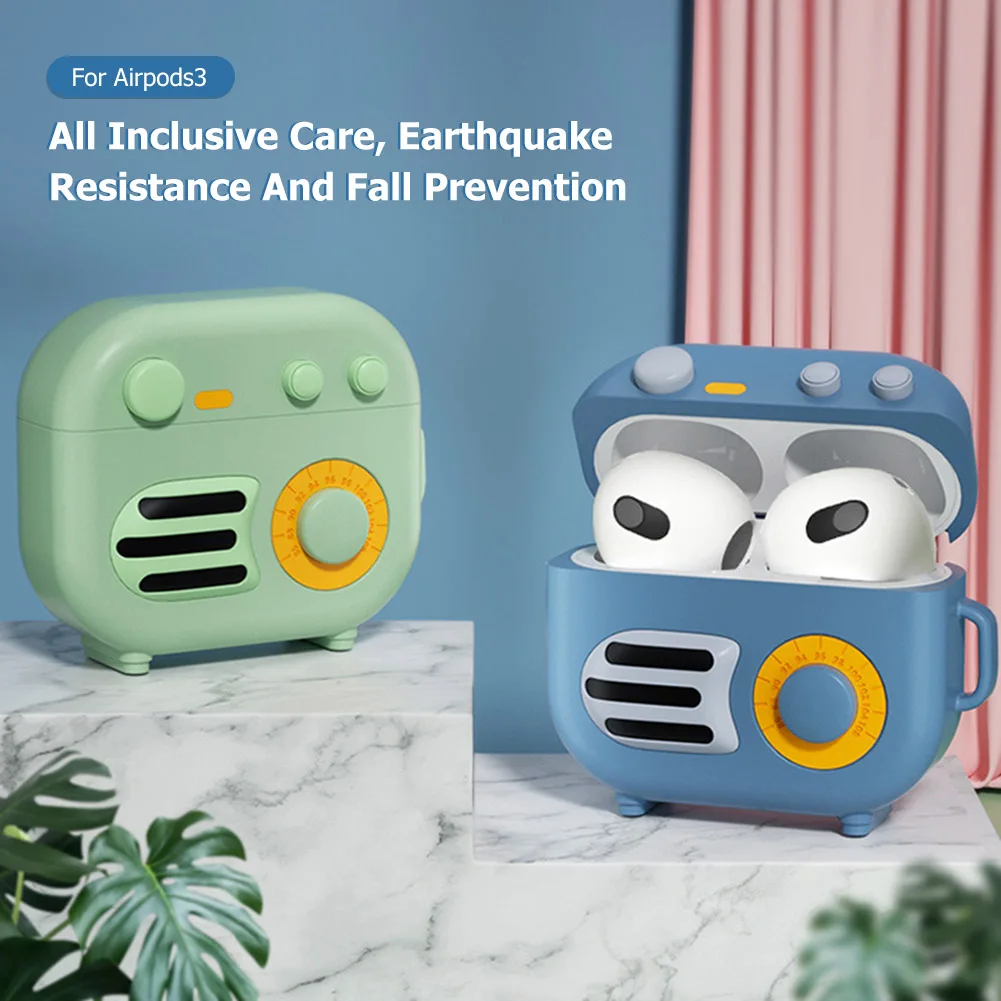Funda protectora de silicona suave para auriculares con patrón de Radio compatible con Bluetooth para Airpods 3 2021 / Airpods Pro, funda para auriculares inalámbricos con hebilla