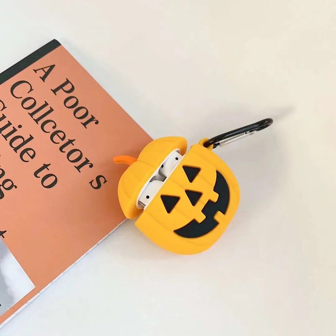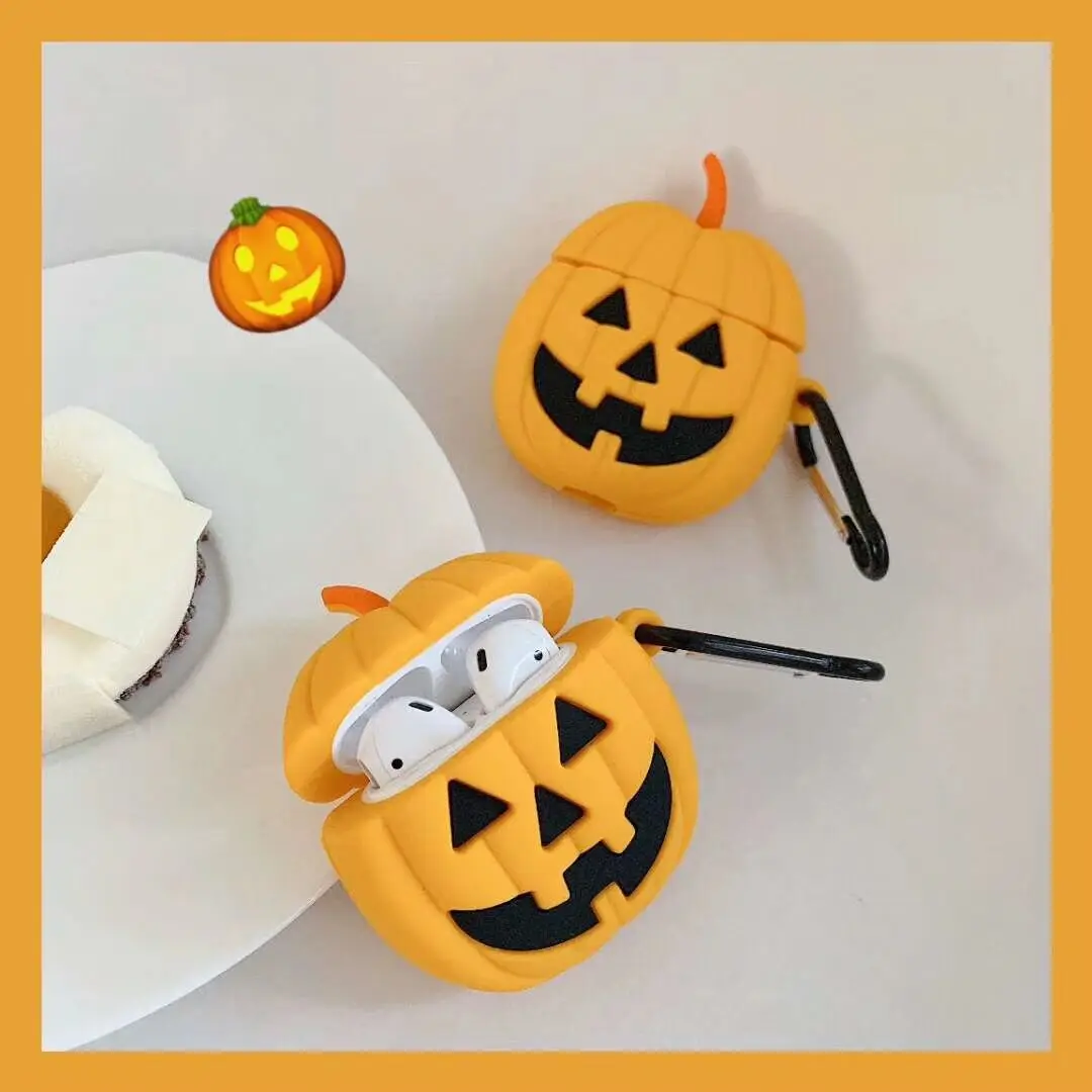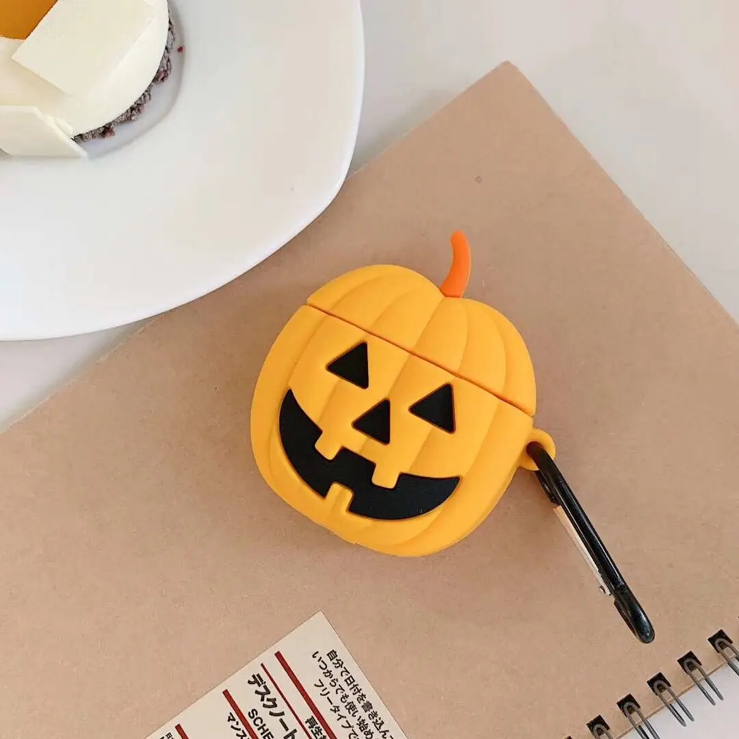 Funda protectora de silicona suave con diseño de calabaza de Halloween 3D para Airpods Pro 2, Funda para Airpods 1/2, Funda