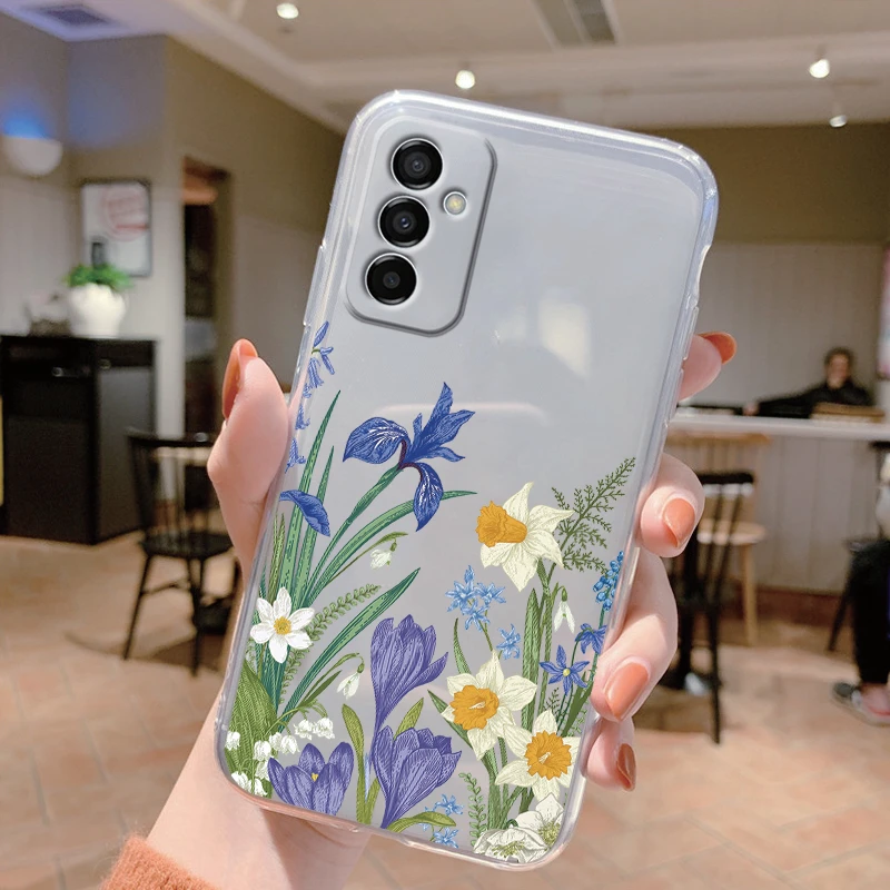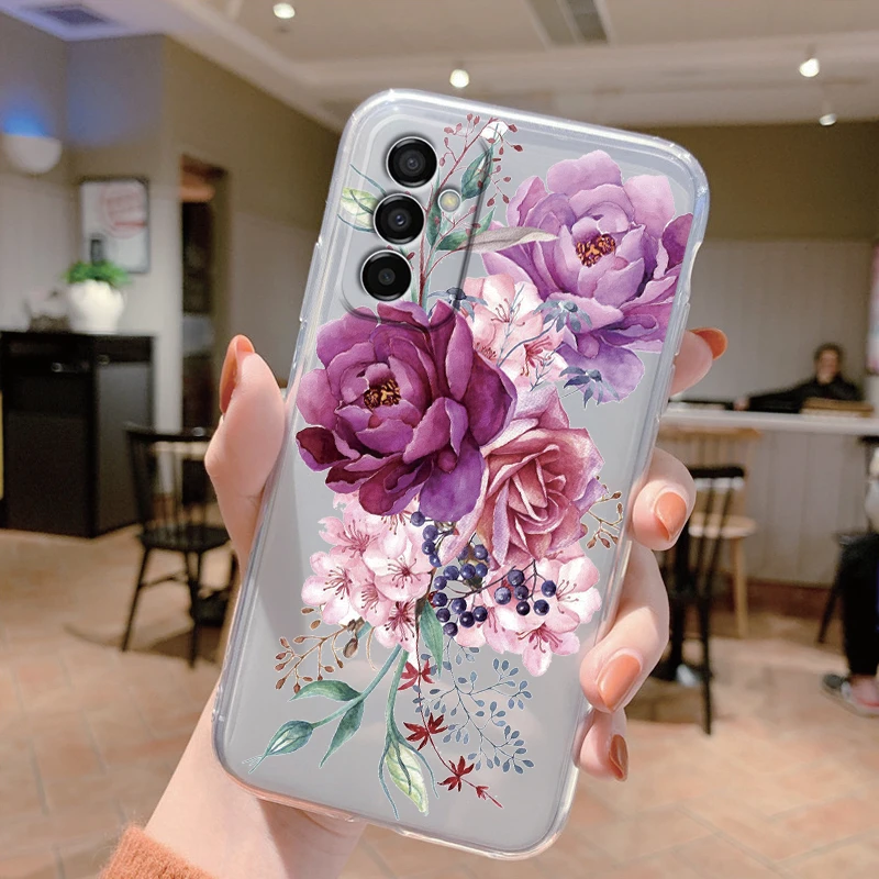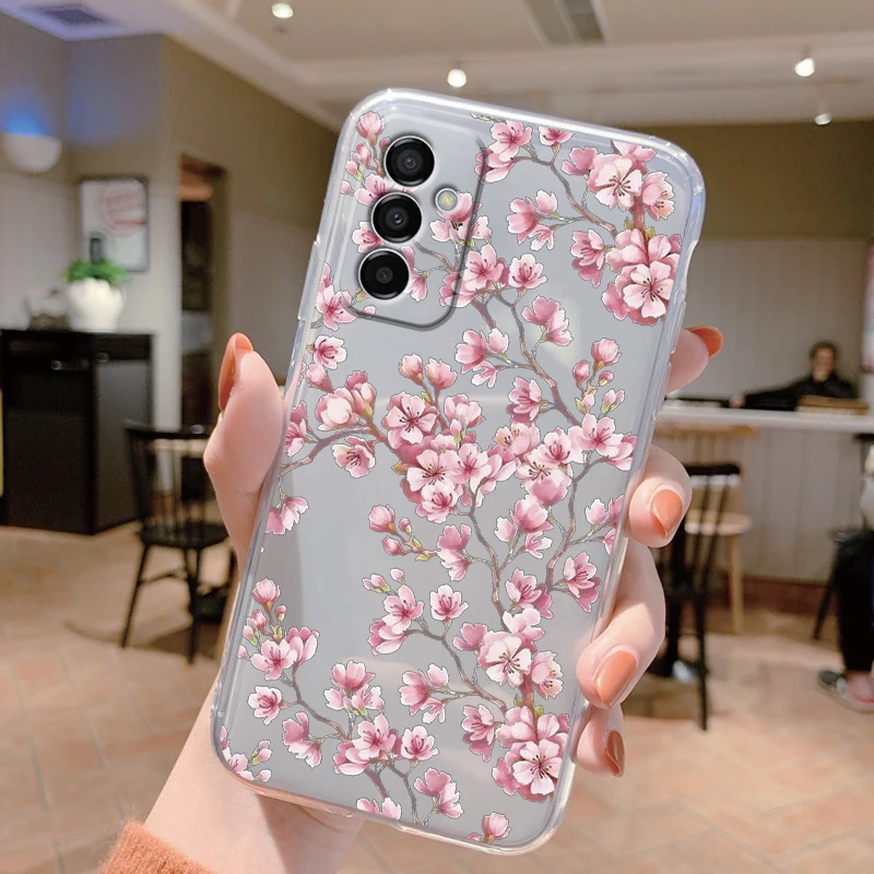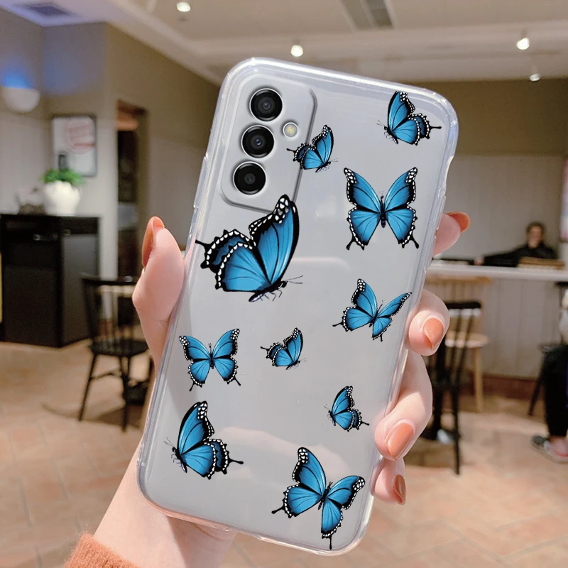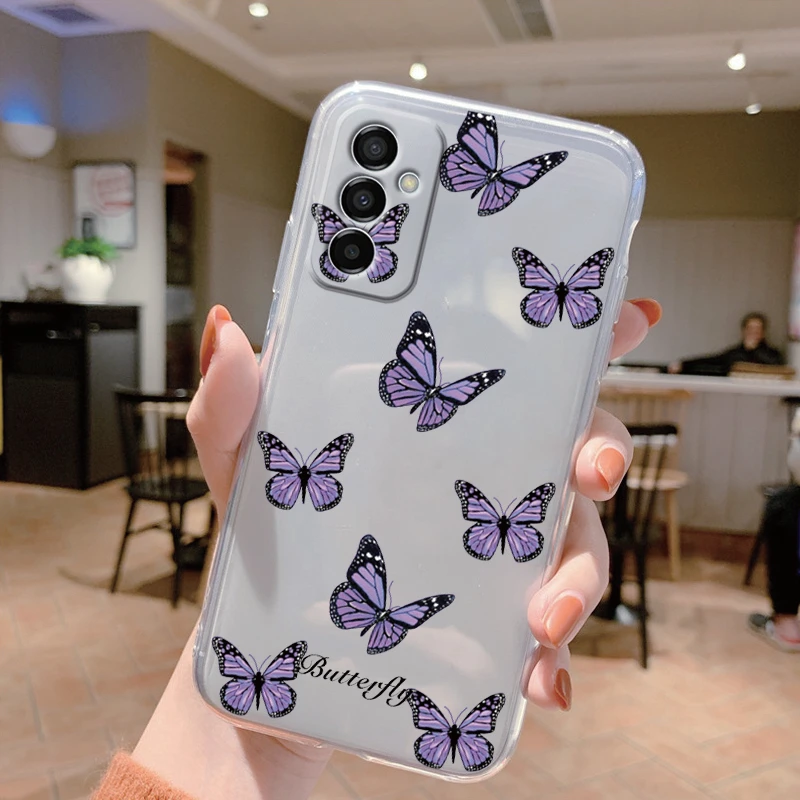 Comprar Funda protectora de silicona suave para Samsung Galaxy M23 5G F23, carcasa transparente con flores y mariposas bonitas