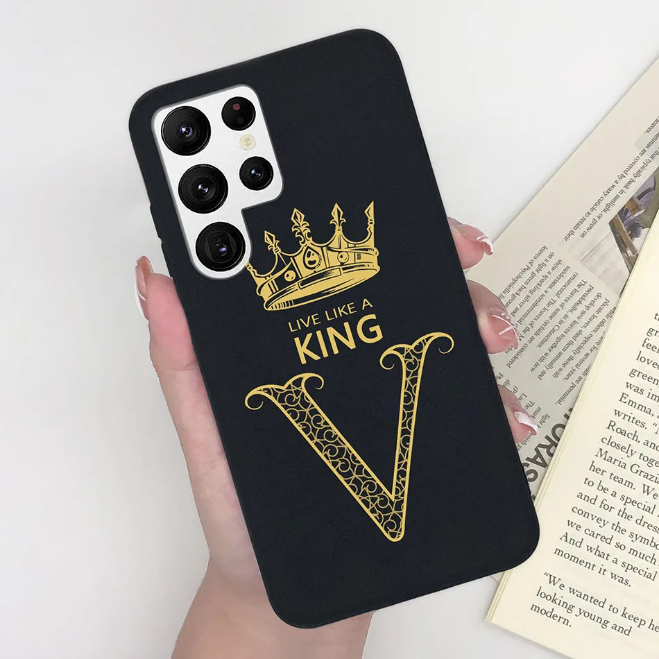 Para Samsung Galaxy S23 Ultra S23 Plus S23 5G Funda de lujo con letras de corona Funda protectora de silicona suave Nuevo diseño Pareja Fundas
