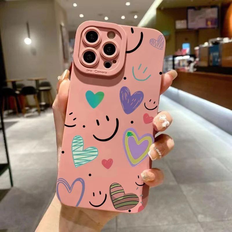 Comprar Funda protectora de teléfono Love Happy Face Smile para iPhone 17 16 15 14 13 12 11 Pro Max Plus 16E 17 Air funda suave de silicona