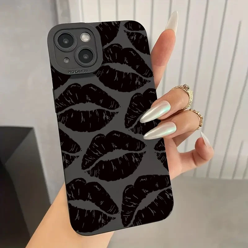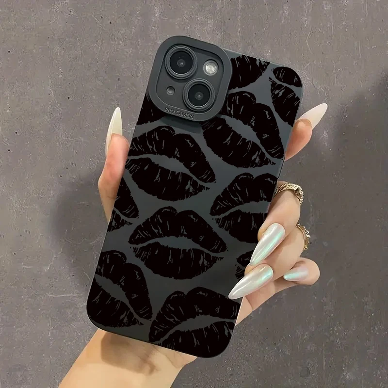Funda protectora para teléfono móvil Black Lips Kiss para iPhone 16 Pro Max 15 14 13 12 11 Pro Max 7 8 14 15 Plus SE 2 X XS XR Funda mate