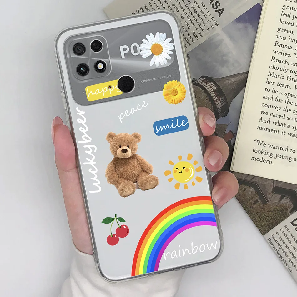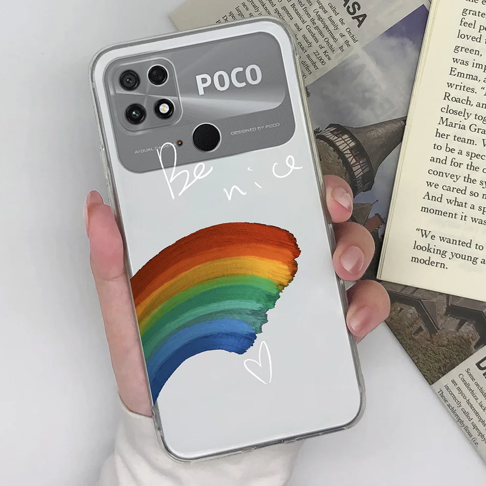 Funda para Xiaomi Poco C40 vaca Arco Iris transparente suave delgada silicona teléfono funda protectora para Poco C 40 PocoC40 parachoques Capa TPU