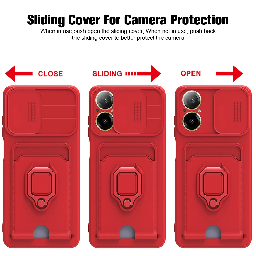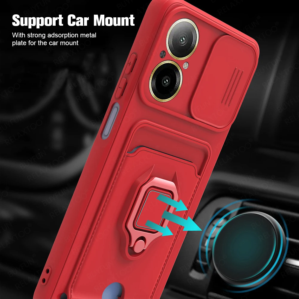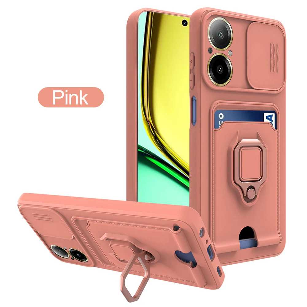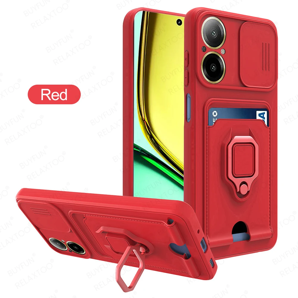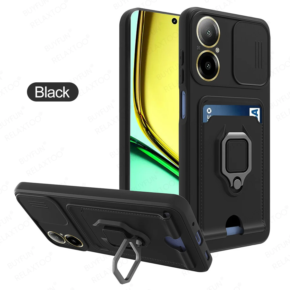 Funda de TPU protectora para cámara deslizante para C67 4G, soporte magnético, bolsa para tarjetas, funda a prueba de golpes en RealmeC67 Realmi C67 C 67 67C 4G