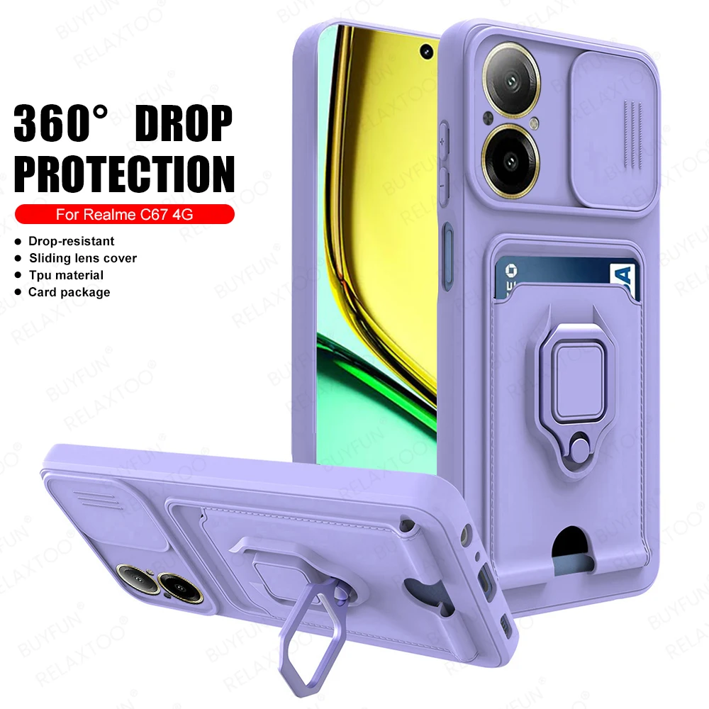 Funda de TPU protectora para cámara deslizante para C67 4G, soporte magnético, bolsa para tarjetas, funda a prueba de golpes en RealmeC67 Realmi C67 C 67 67C 4G