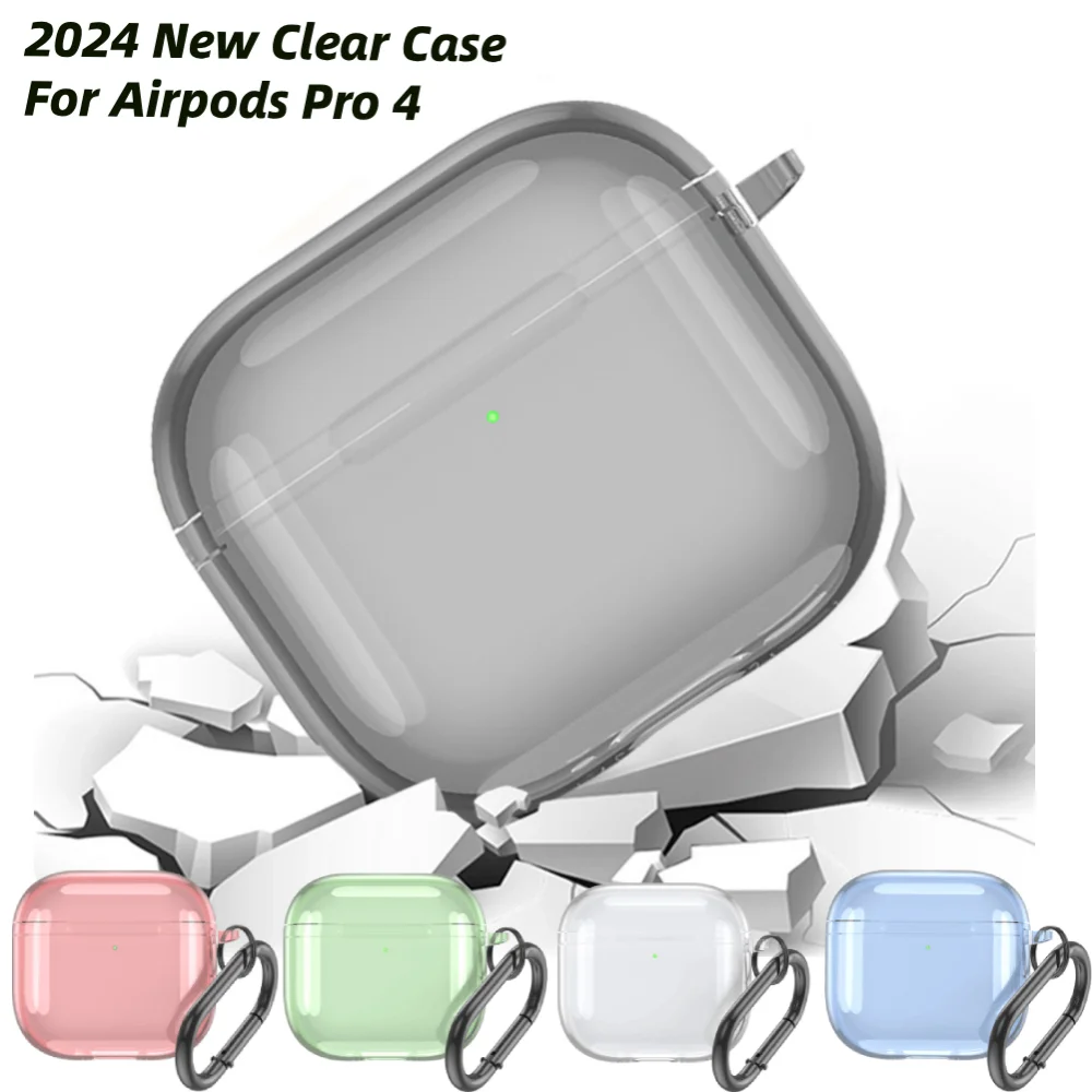 Comprar Funda protectora translúcida para AirPods 4, funda Premium para AirPods de 4. a generación, Protector contra caídas con mosquetón