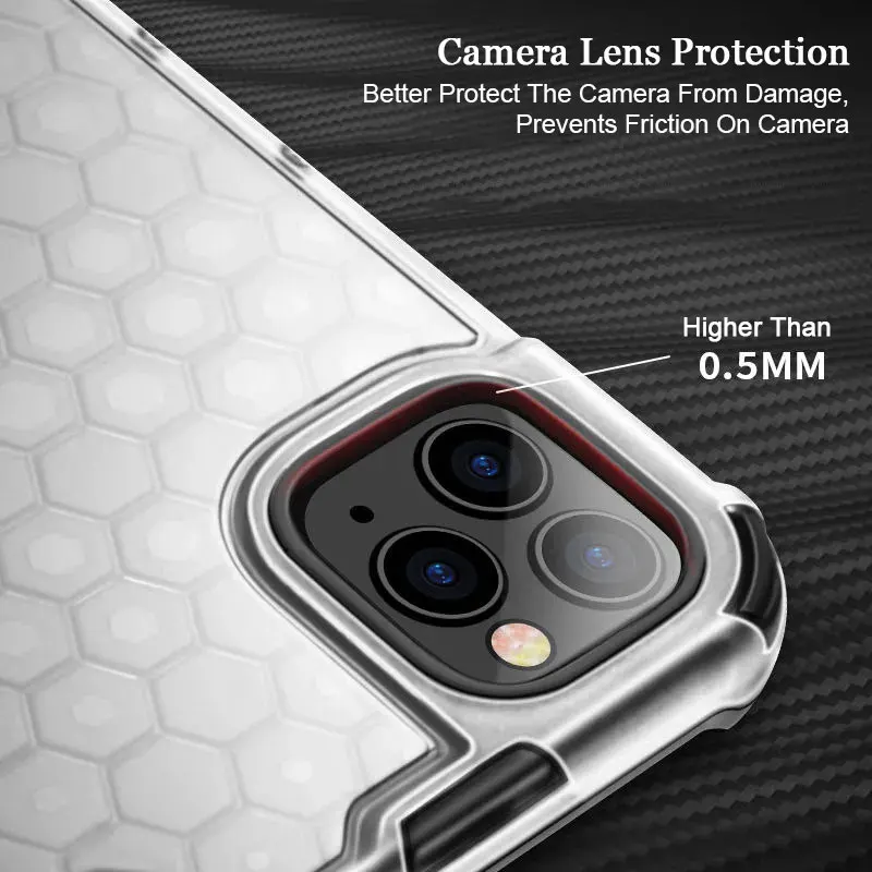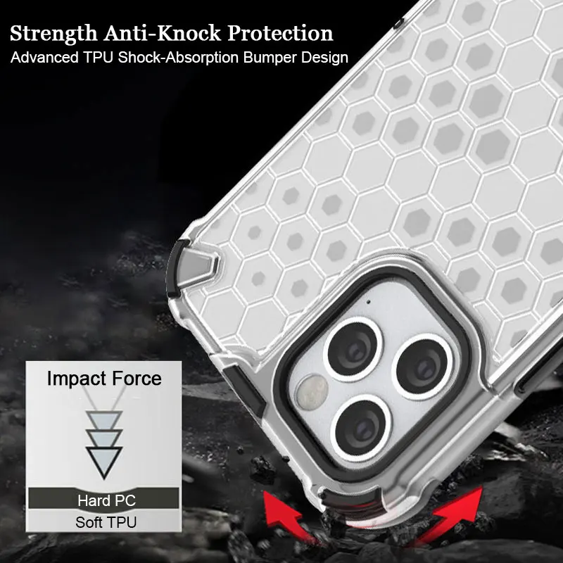 ♦Combinación de textura suave y dura, translúcida, carcasa trasera en forma de panal, anticaída integral