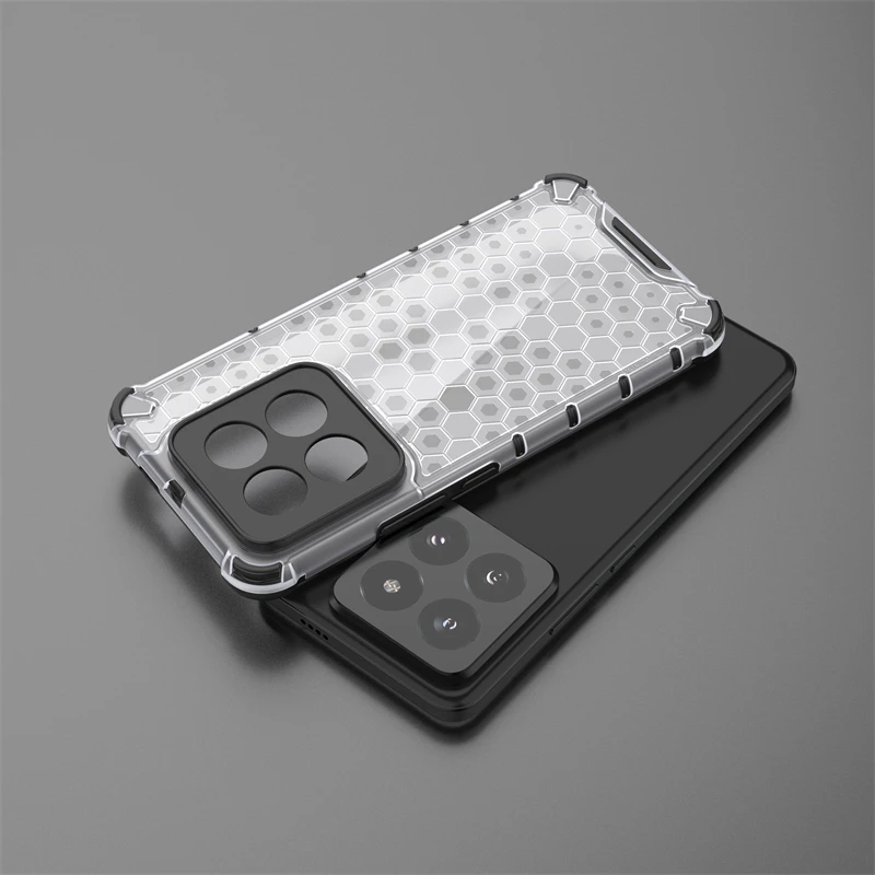 Funda de panal a prueba de golpes para Xiaomi 14 Pro, armadura Capa Xiaomi 14 Pro, funda protectora translúcida, funda protectora Xiaomi 14 Pro