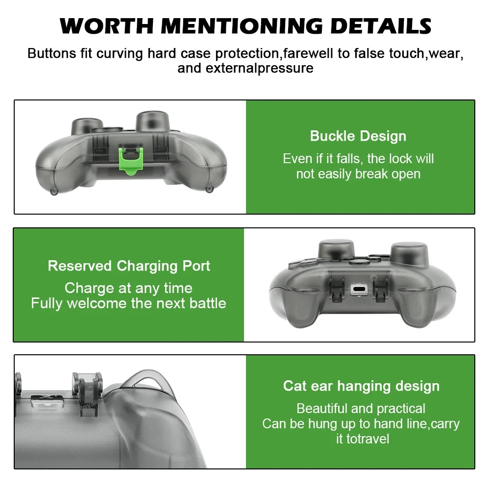 ❤️ Hecho de PC duradero y no tóxico.Sin olores.❤️ Apto para viajes: el diseño delgado brinda un ajuste cómodo y un volumen de almacenamiento compacto, lo que le hace sentir como sostener el control remoto original sin agregar volumen adicional❤️ Proteja y almacene perfectamente sus joypads, evite el polvo❤️ Detalles más amigables: la carcasa de cristal ahumado permite la belleza natural de Xbox Serie S X El controlador brilla.Diseñado con un orificio de carga rápida, puede cargar el controlador de juego Switch Pro sin quitar el estuche.Una hebilla de bloqueo de carcasa única mantiene su controlador a salvo del interior contra caídas inesperadas