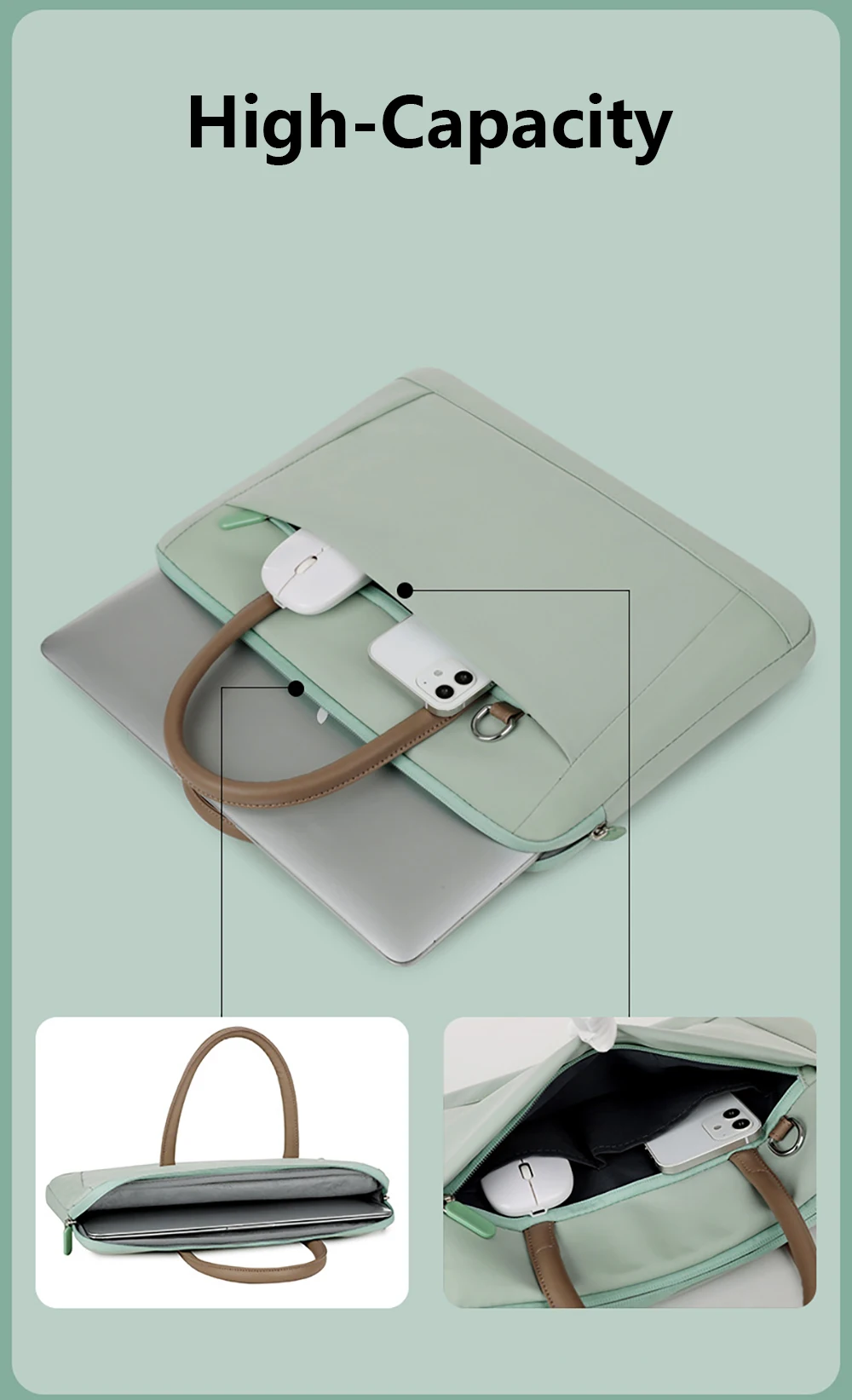 1. El diseño interno a prueba de golpes proporciona una protección suave para el portátil en el interior.