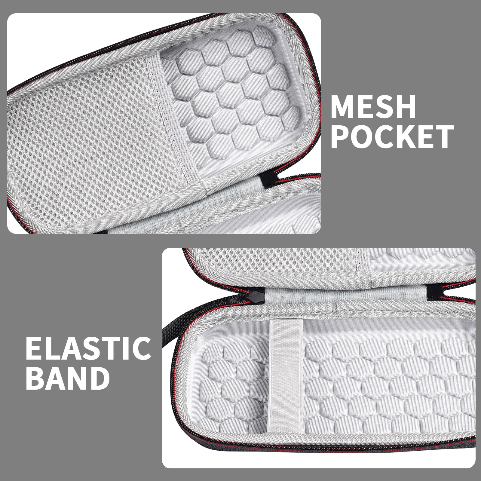 2. Protección integral:Equipado con una carcasa rígida de EVA resistente, la carcasa rígida proporciona una excelente resistencia al polvo y a los golpes. Su forro grueso y suave protege la pantalla de la consola de juegos de arañazos, mientras que las correas elásticas aseguran el dispositivo firmemente para evitar resbalones.