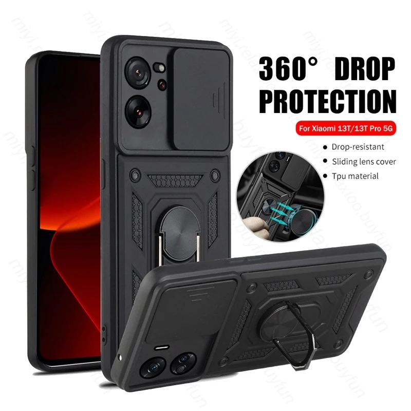 Comprar Funda protectora para Xiaomi 13 T Pro 5G, cubierta de lente deslizante a prueba de golpes, Xiaomi Xiaomy Mi13T Mi 13 T Pro, anillo de soporte magnético