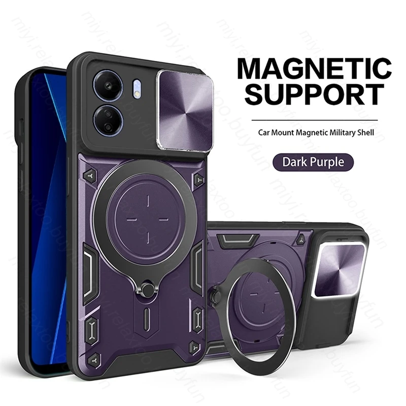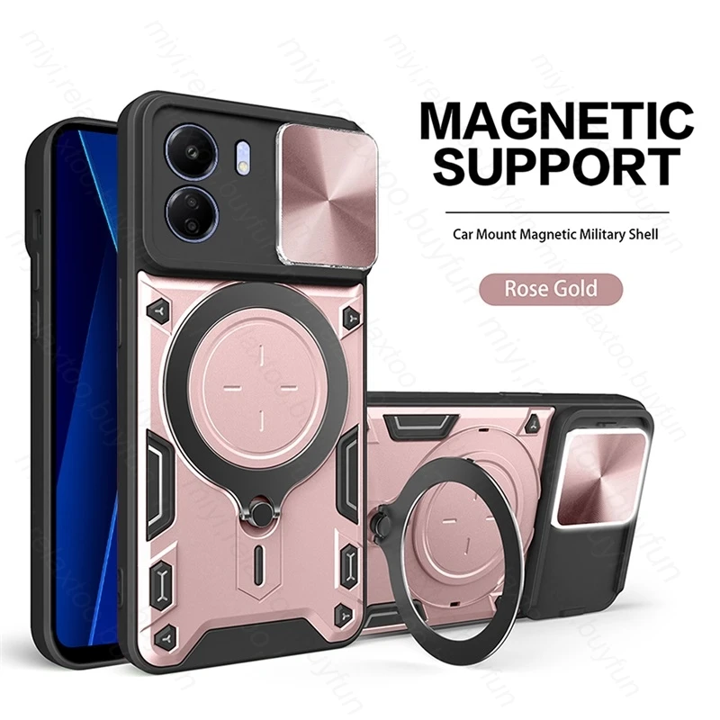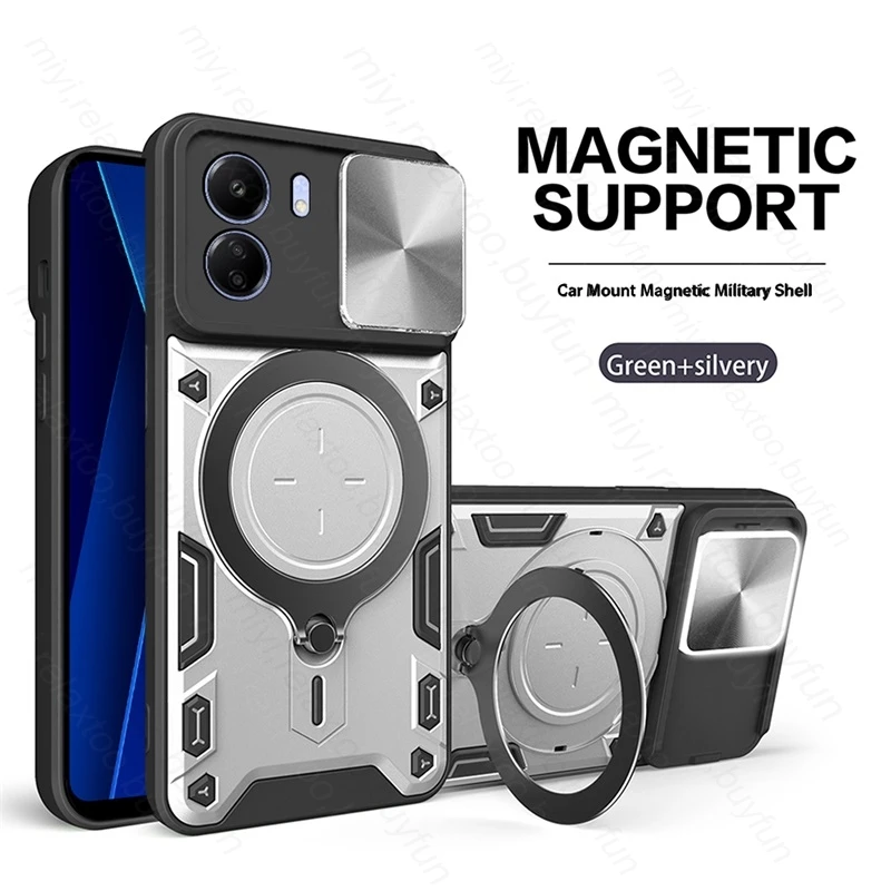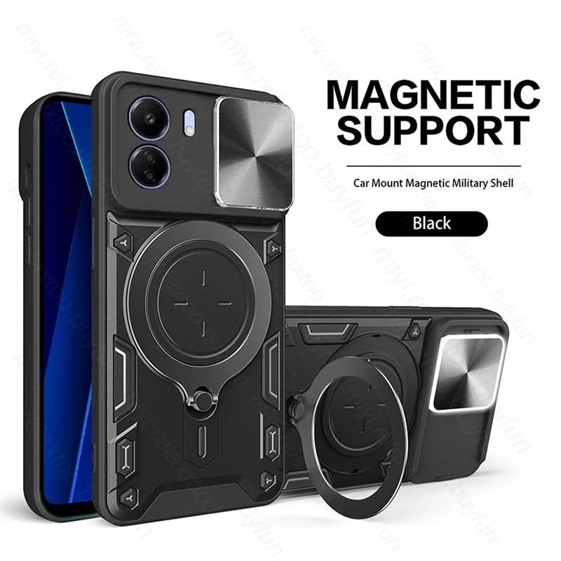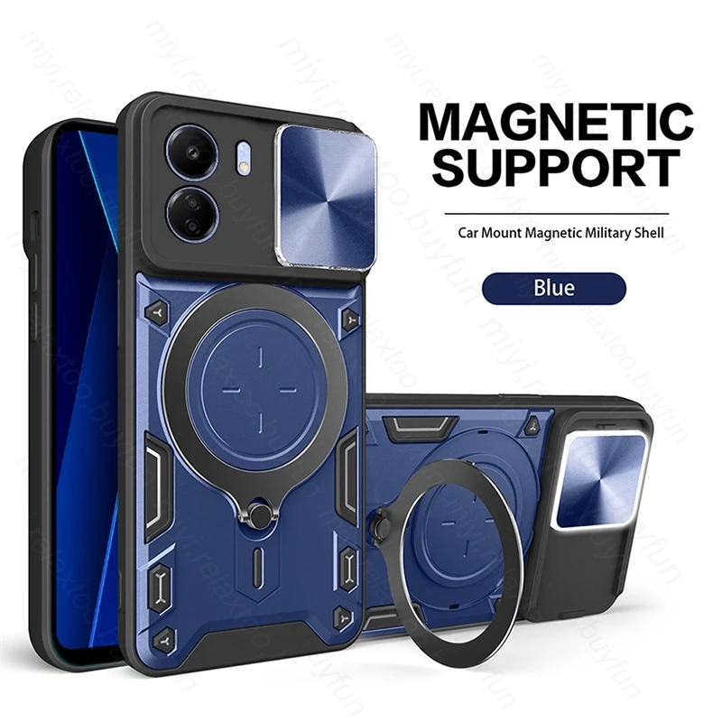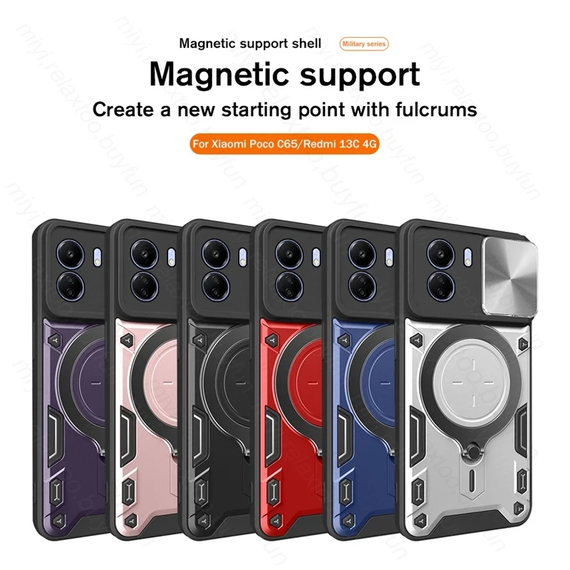 Comprar Funda protectora para Xiaomi Redmi 13C 13 C Redmi13C, protector de lente deslizante, armadura a prueba de golpes, PocoC65, Poco C65 C 65, soporte magnético de anillo