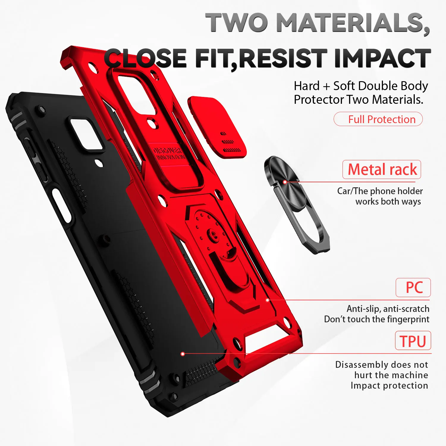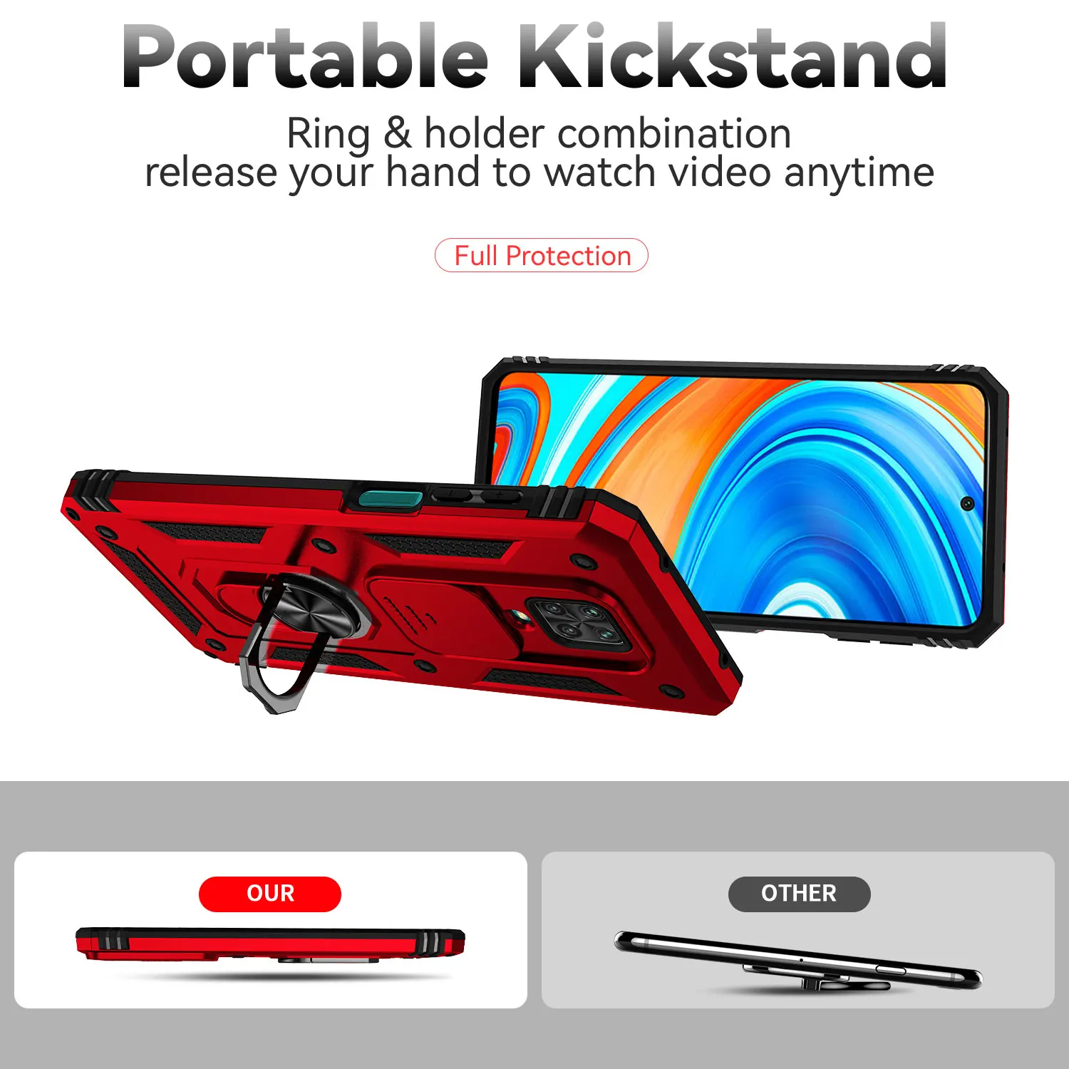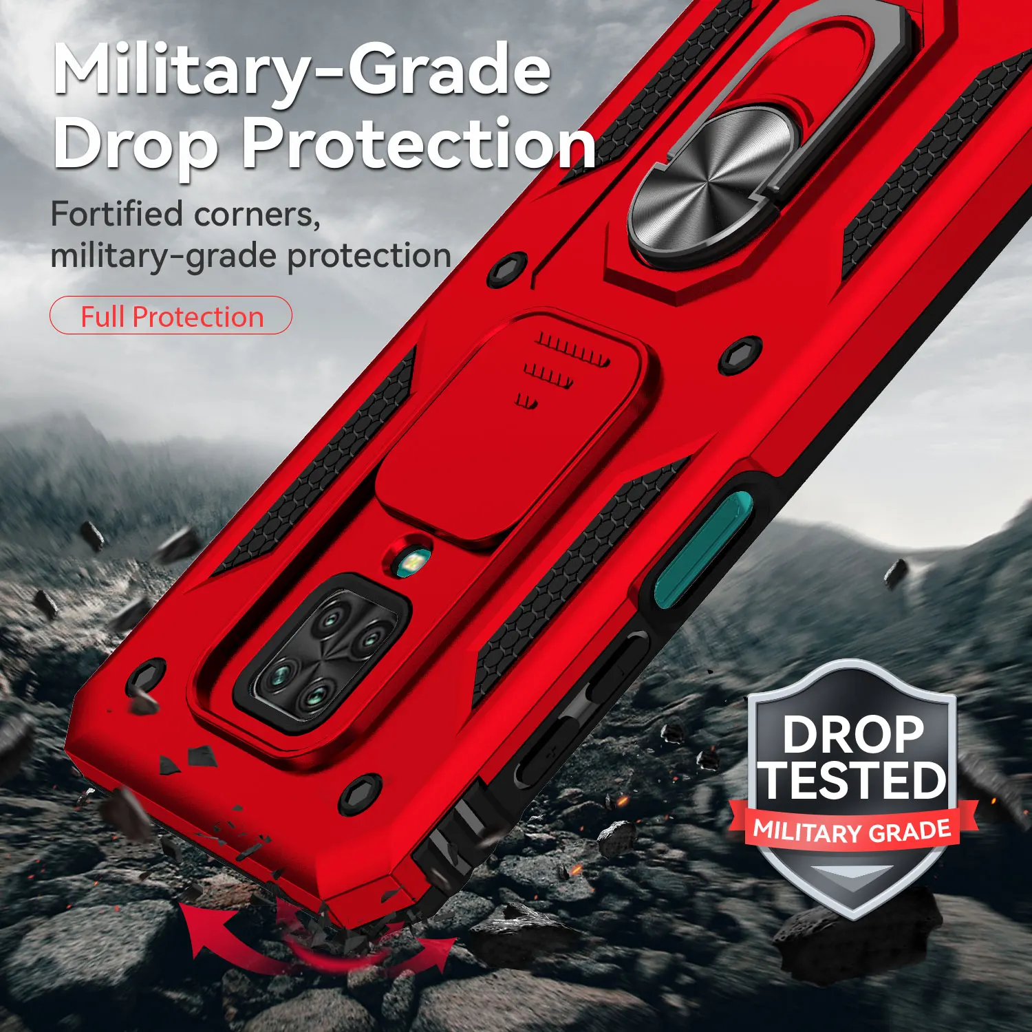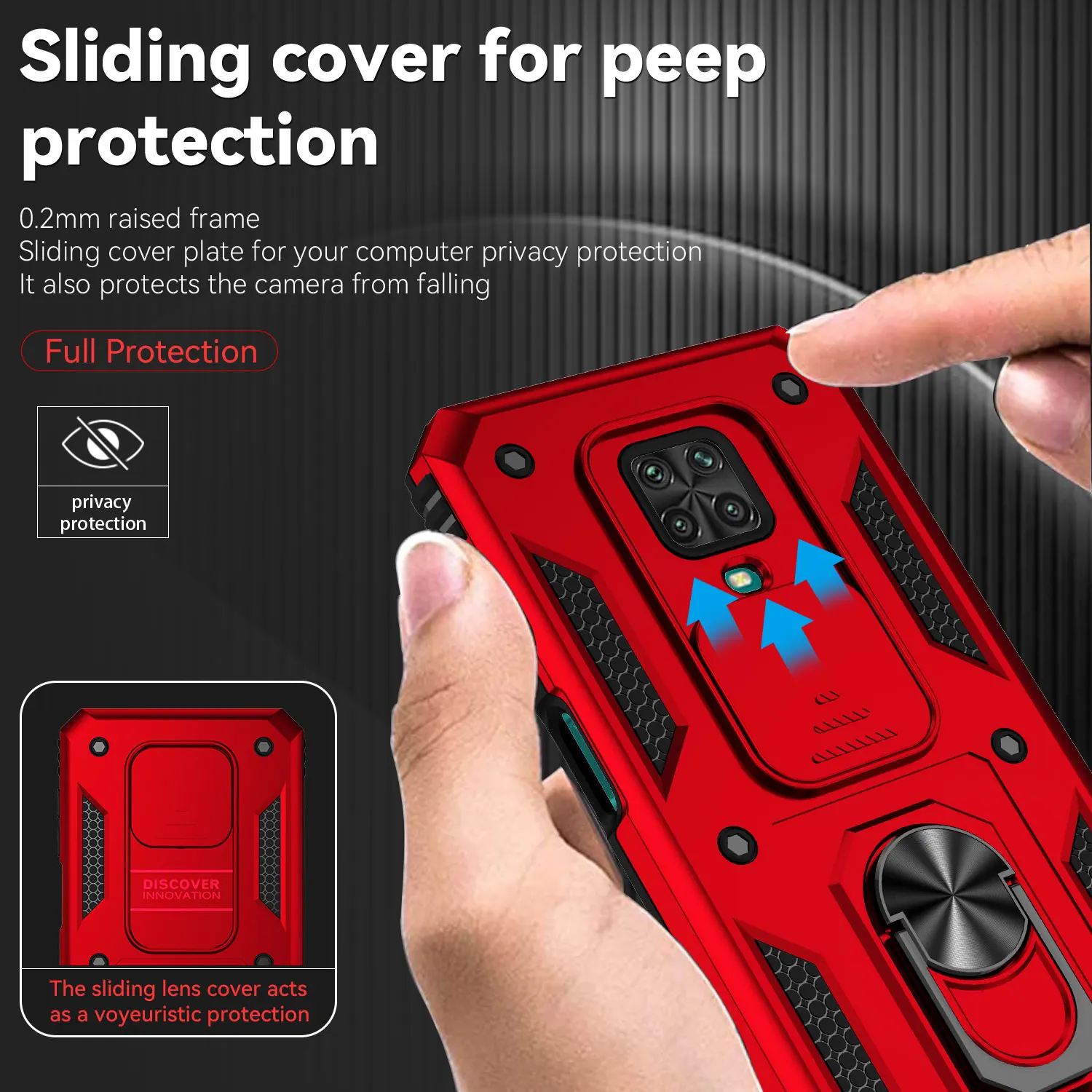 Funda protectora para Xiaomi Redmi Note 9S, protector de lente deslizante, soporte de anillo magnético, armadura a prueba de golpes, Redmi Note 9 Pro Max