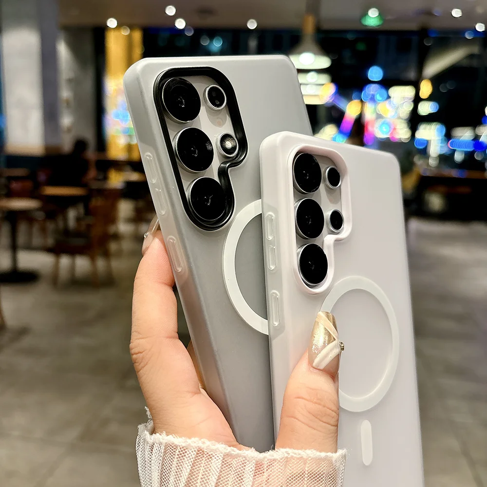 Funda 2 en 1 de grado militar a prueba de golpes para samsung s25 ultra 24 23 plus a16 a55 a54 Color caramelo silicona magnética Magsafe carcasa suave