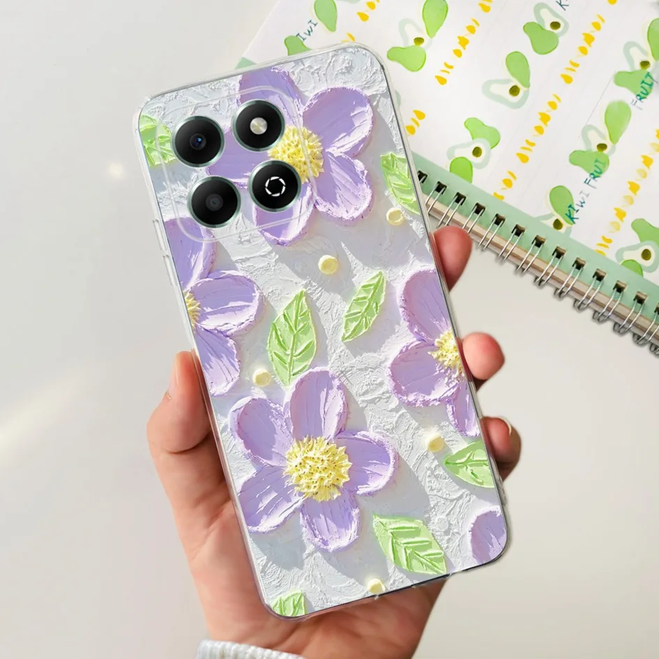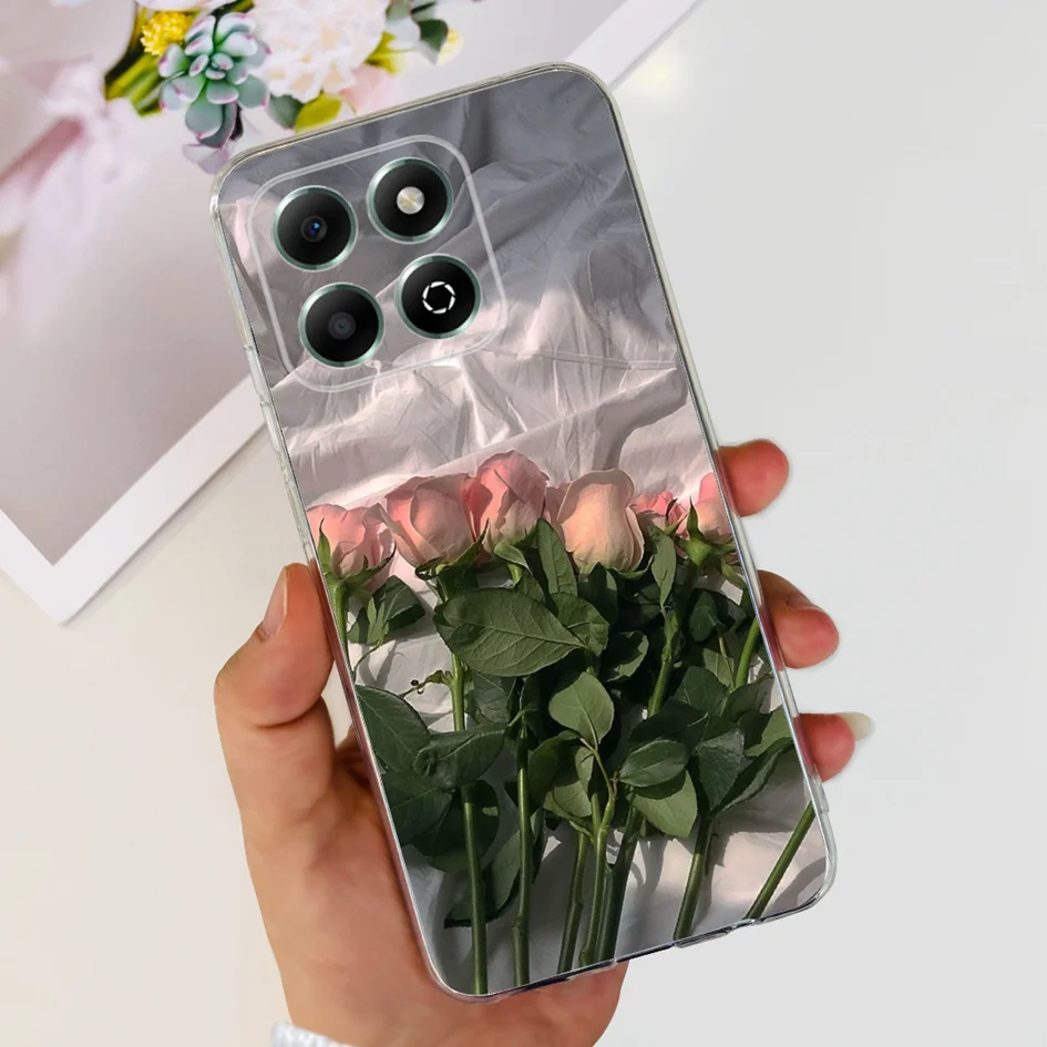 Para Honor X6b 2024 Funda de silicona transparente suave con flores a la moda para HonorX6b 4G X6b, Funda de teléfono a prueba de golpes de color de moda para HonorX6b 4G X6b