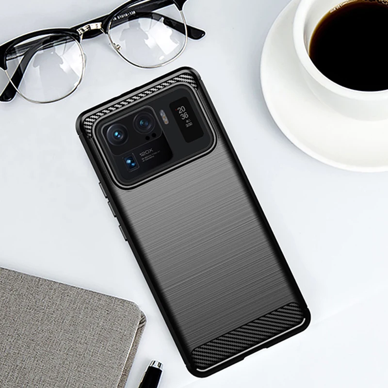 Comprar Funda a prueba de golpes para Xiaomi Mi 11 Ultra, carcasa de silicona suave, delgada, de fibra de carbono, para teléfono