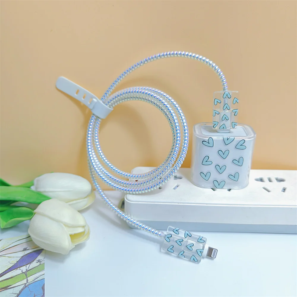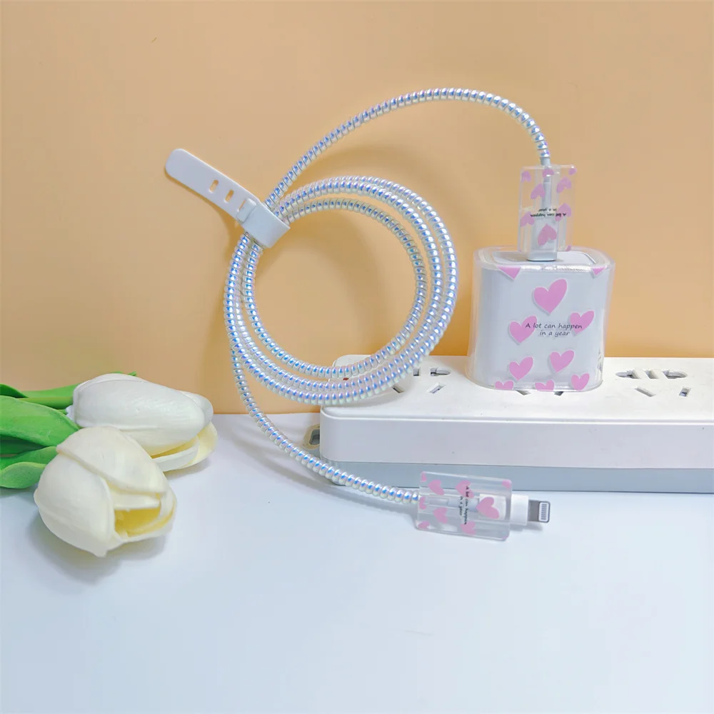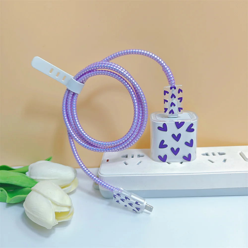Funda púrpura con forma de corazón de amor para iphone, funda protectora Original para cargador de EE. UU. de 18/20W, organizador de cables, adaptador de línea de datos