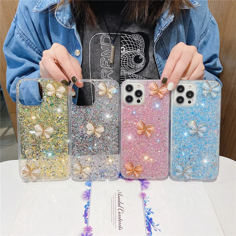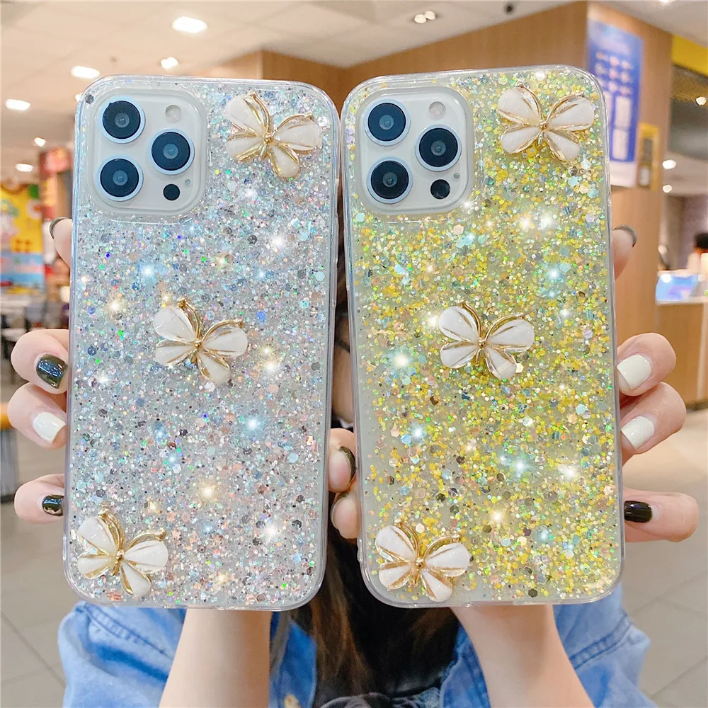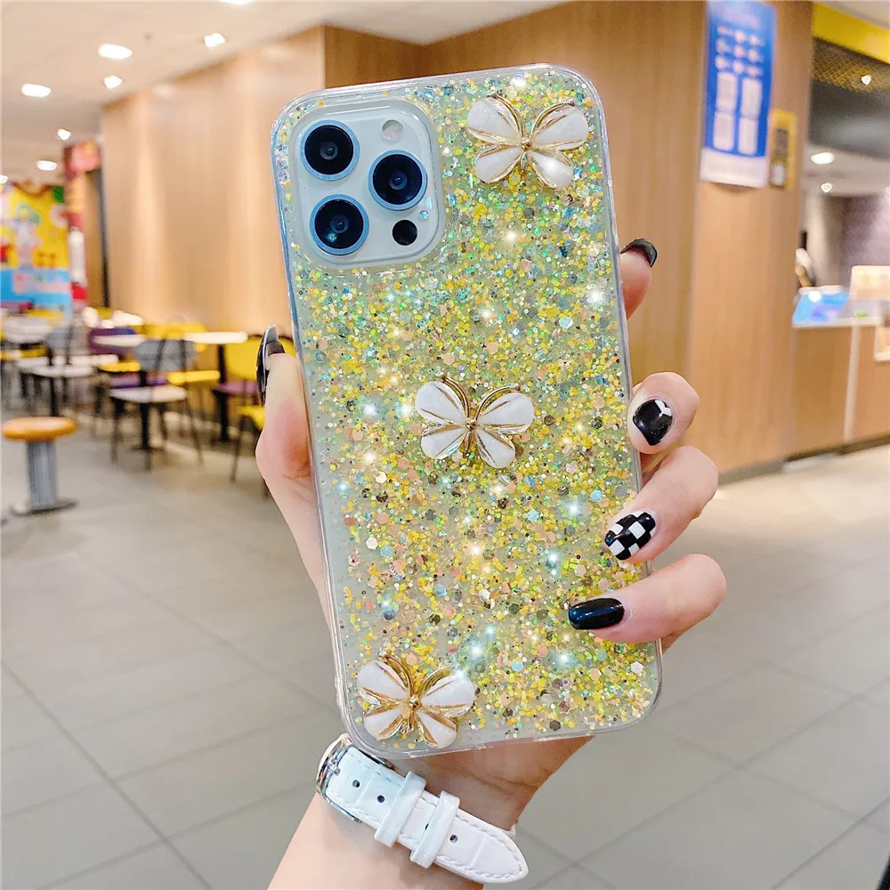 Funda con purpurina de mariposa 3D de cristal para Xiaomi Redmi Note 14 Pro Plus 4G 5G 14C 14T Pro POCO X7 X6 Pro funda de silicona suave para teléfono