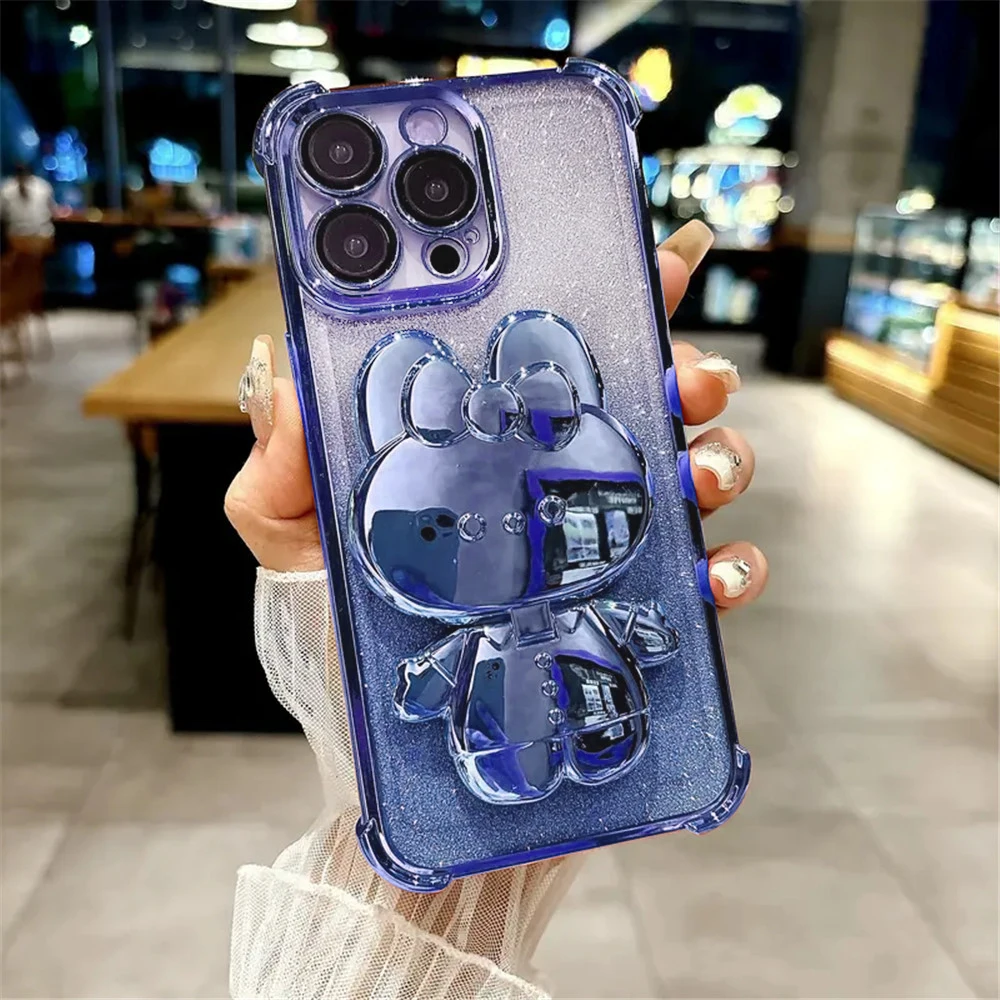Funda con purpurina a prueba de golpes para OPPO A16 A17 A5 A9 2020 A54S A53S Reno 12 11 Pro 12F 13F espejo de maquillaje Invisible cubierta con soporte de conejo
