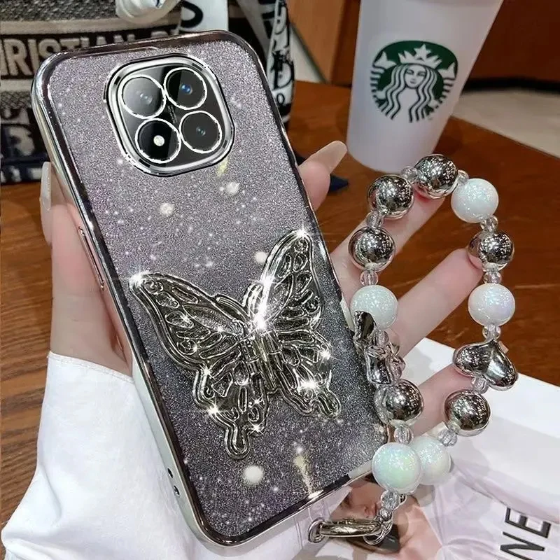 Funda con purpurina para teléfono con pulsera y soporte de mariposa para OPPO A5 Pro A5X A3X A80 A60 A40 A18 A38 A98 A58 A79