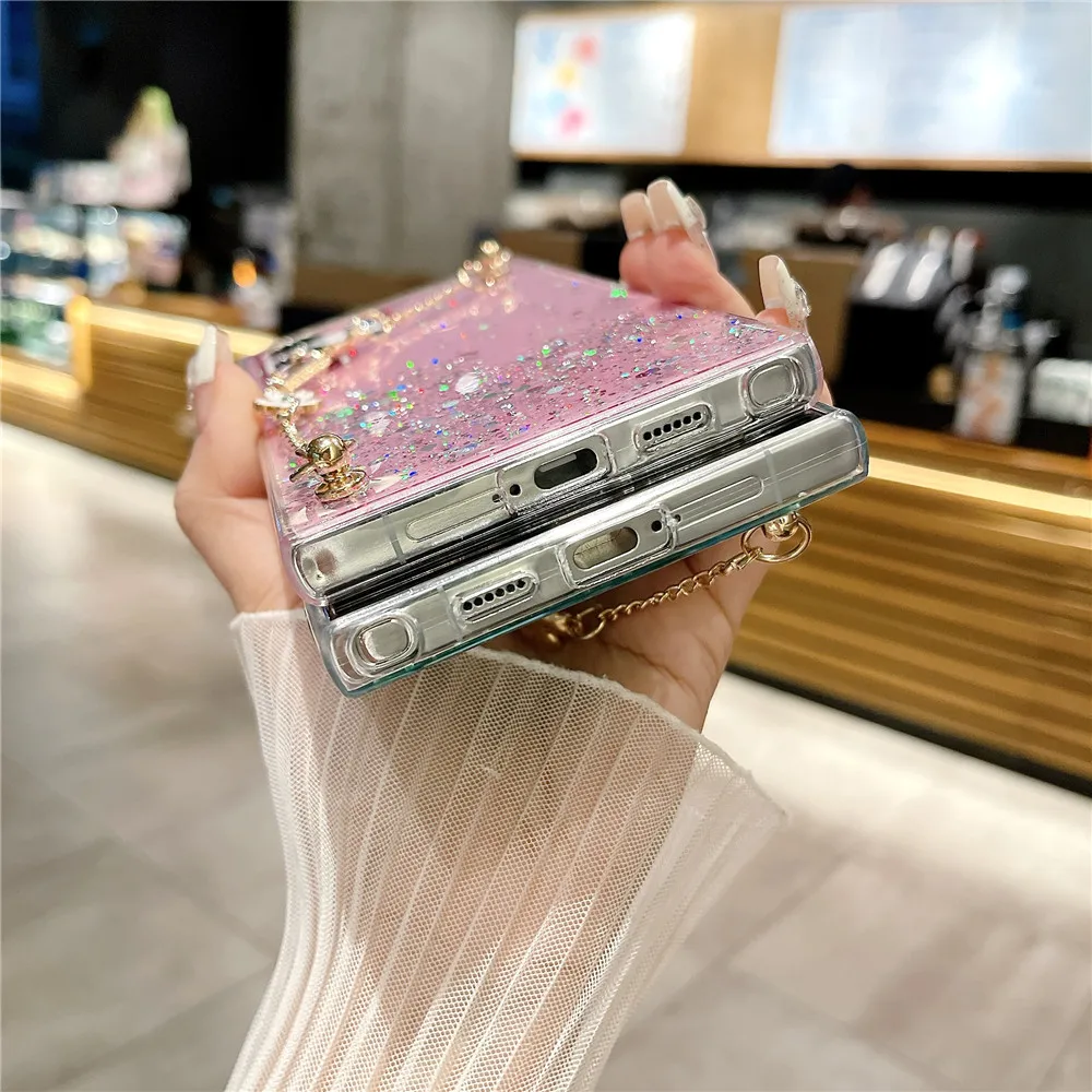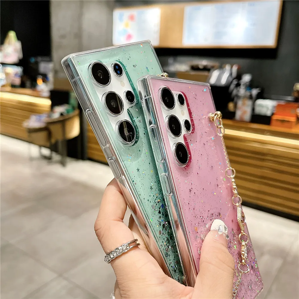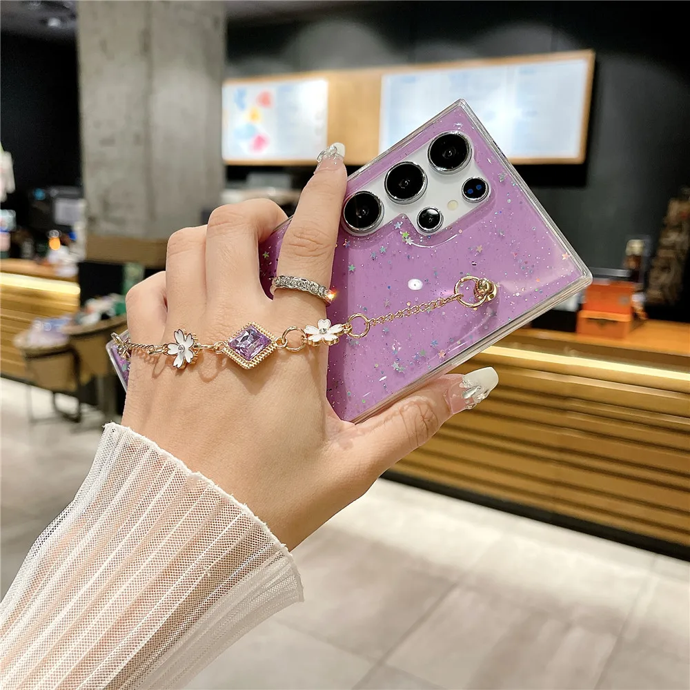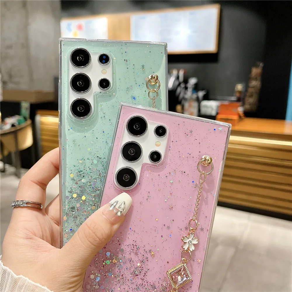 Funda con purpurina y pulsera de flores a la moda para Samsung Galaxy S24 S23 S22 S21 S20 FE Ultra Plus S10 Note 20 funda de silicona Ultra suave