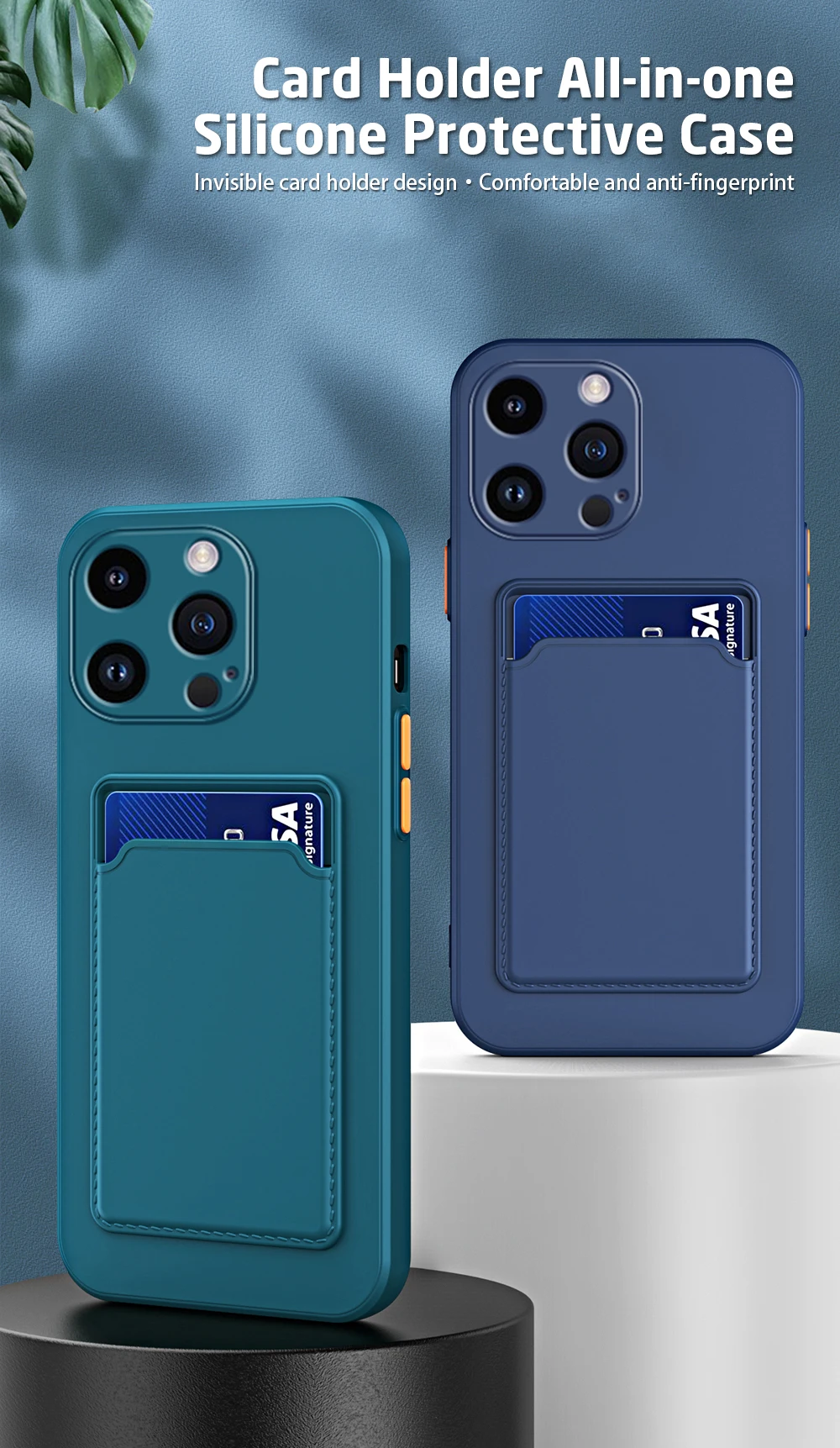 Comprar Funda con ranura para tarjeta Candy para Iphone 15 Pro Max, carcasa de silicona suave a prueba de golpes, Coque Aifon Iphon Iphone 15 ProMax Plus