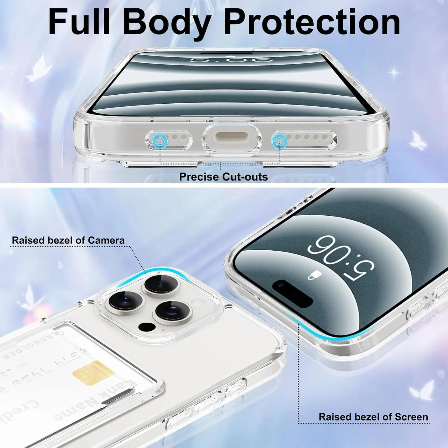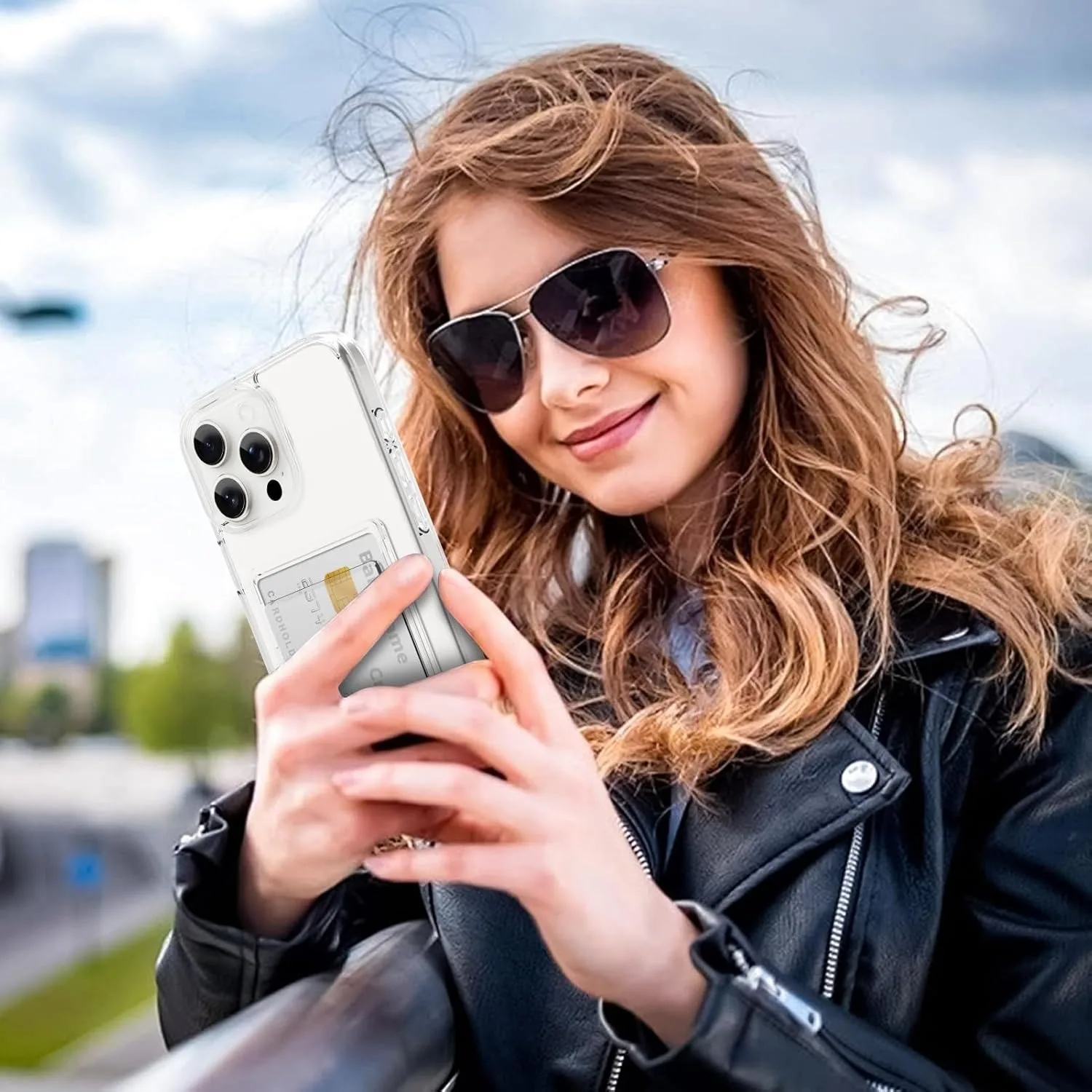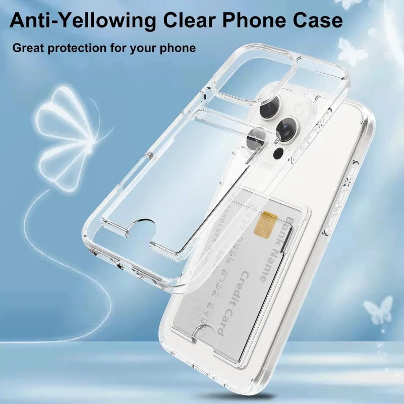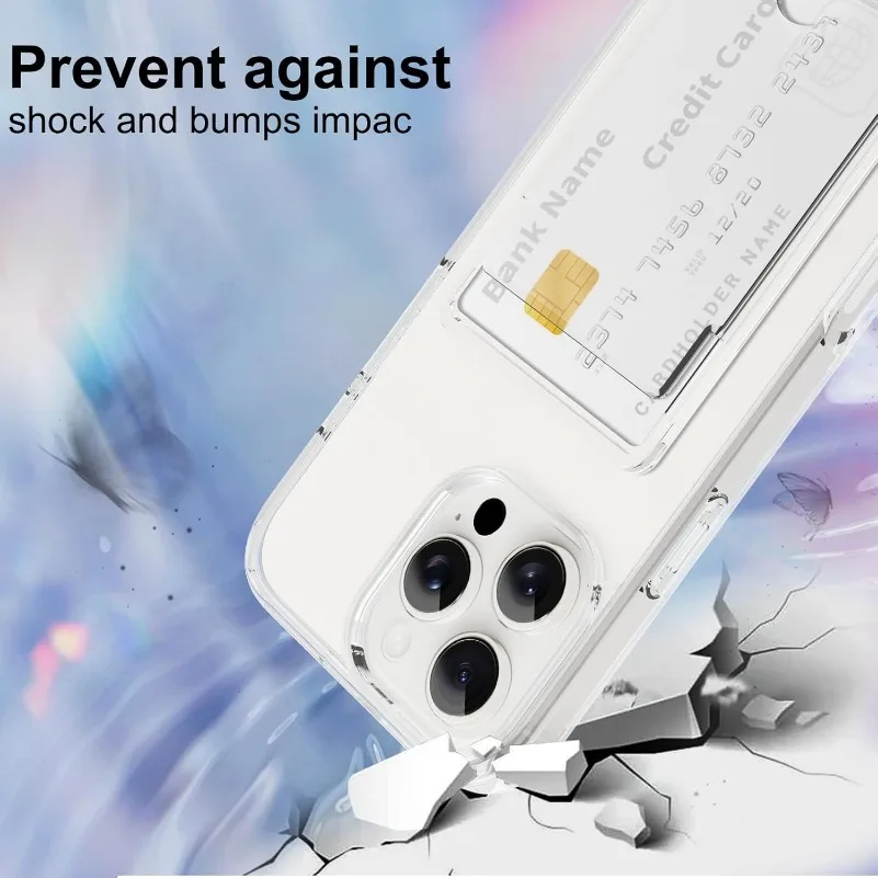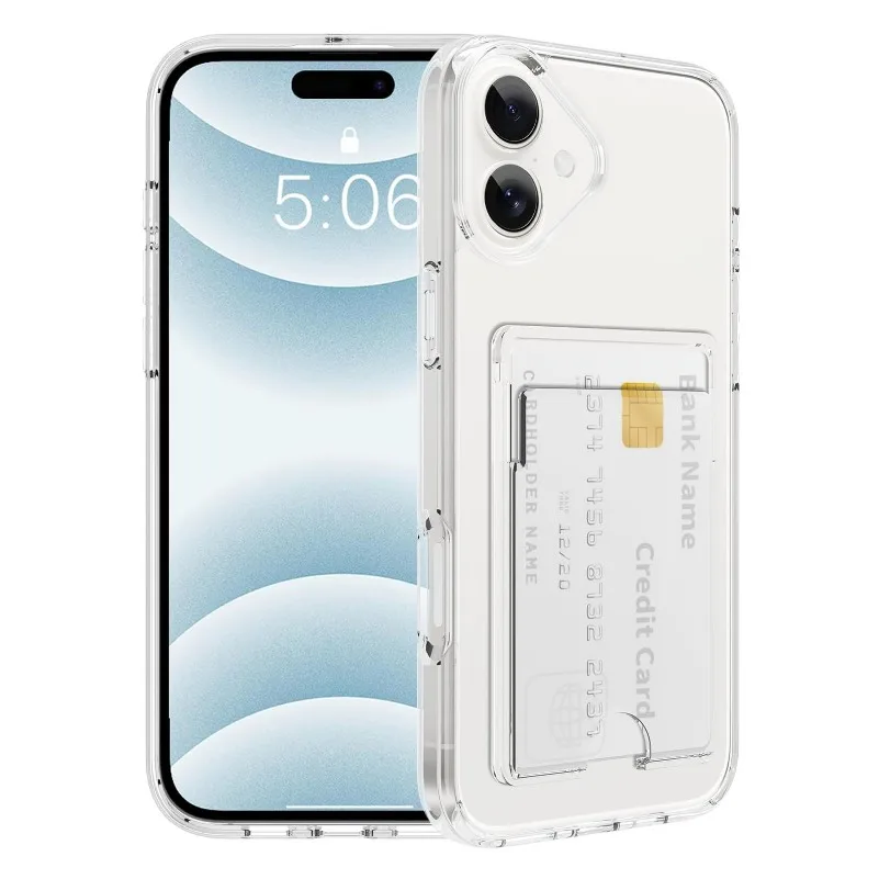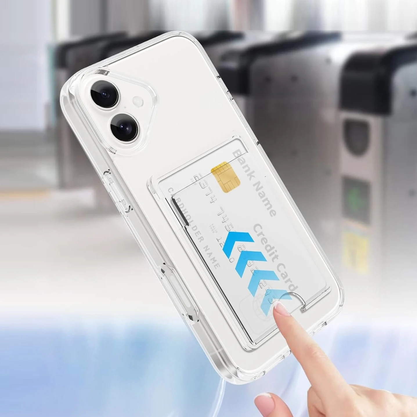 Comprar Funda con ranura para tarjeta para iPhone 16 Pro Max, transparente, acrílico, PC, TPU, cubierta de billetera para iPhone 15 Pro Max 16 Plus 11 12 13 14 Pro Max