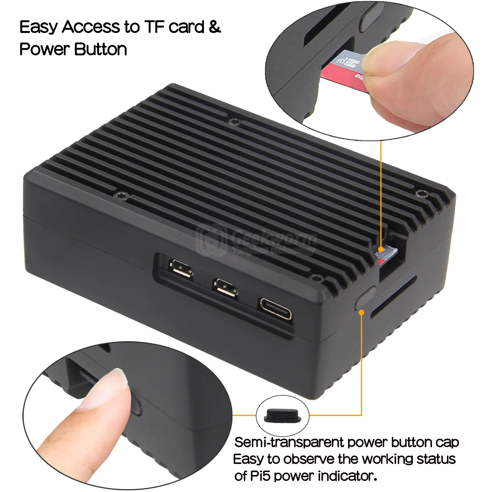 Tapa del botón de encendido semitransparente: fácil de observar el estado de funcionamiento del indicador de alimentación Pi5