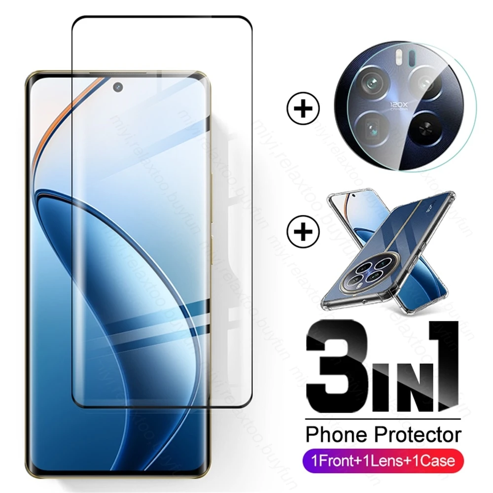 Realmi 12 Pro + 5G Case 3 en 1 Protector de pantalla de vidrio templado y vidrio de cámara y cubierta suave de TPU transparente para 2017 12 Pro Plus 5G 2024