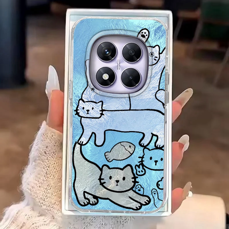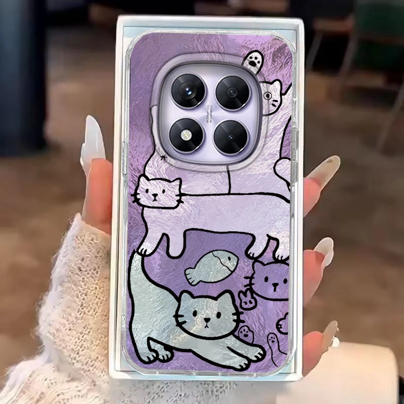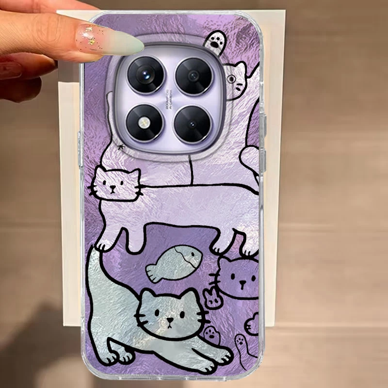 Funda para Redmi Note 14 Pro Plus 13 Pro 14S 14C A3 Xiaomi 14T 13T Pro funda de teléfono púrpura rosa dibujos animados pez gato para Redmi A5 bolsa