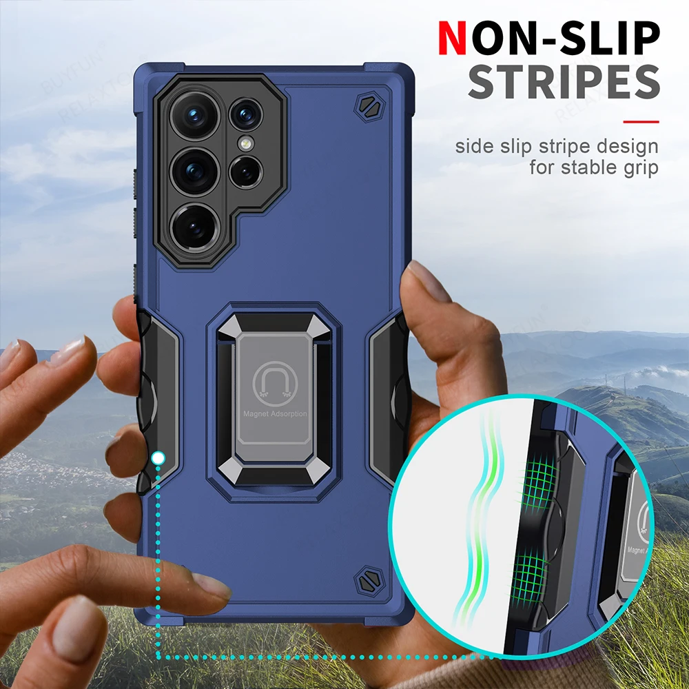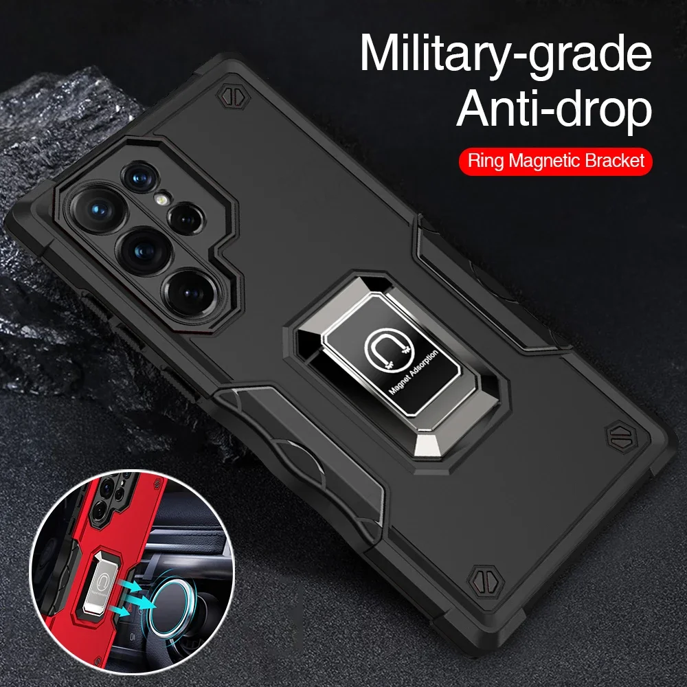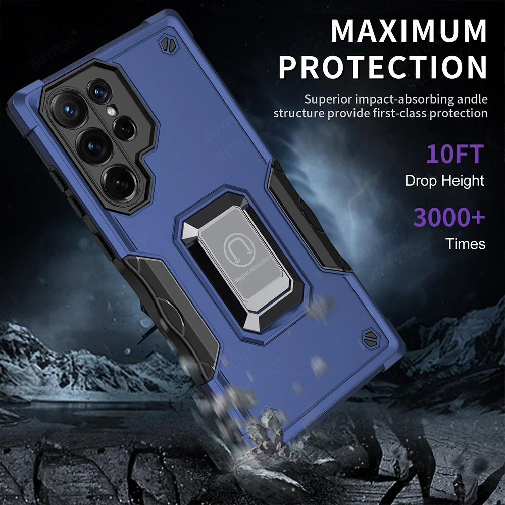 Funda de armadura resistente a prueba de golpes para Samsung S24 Ultra Magnet Holder Ring Protect Fundas SamsungS24 Sumsung S 24 Ultra Plus S24Ultra