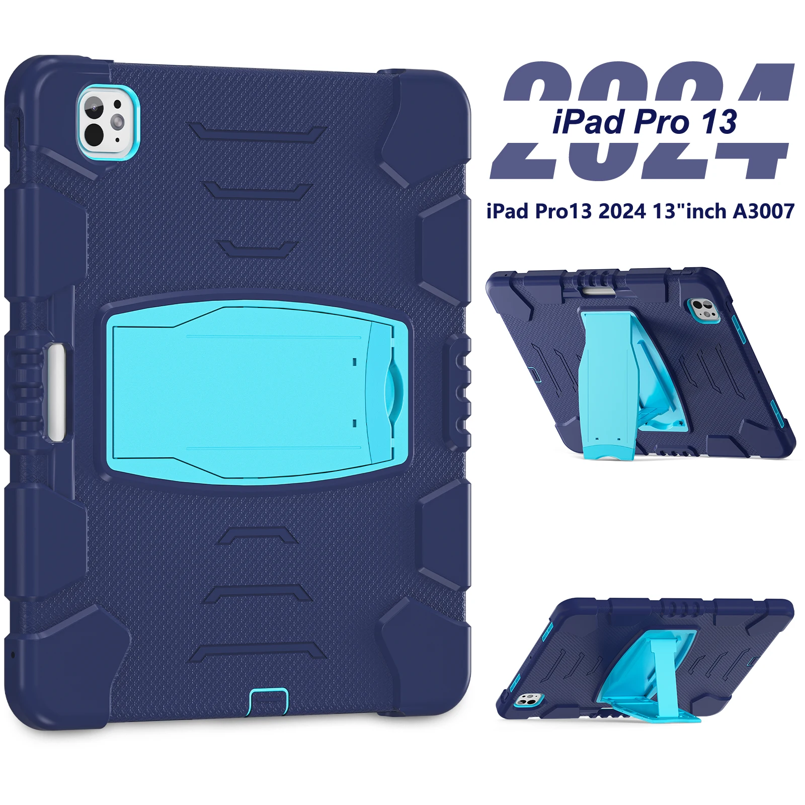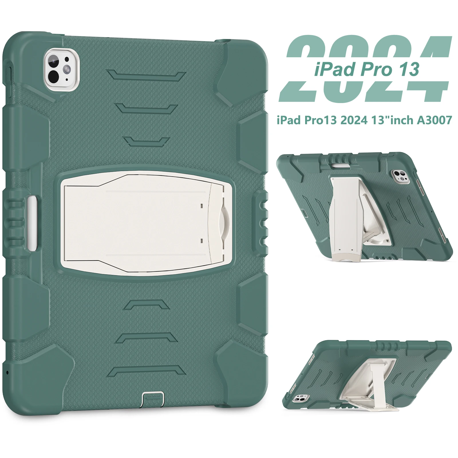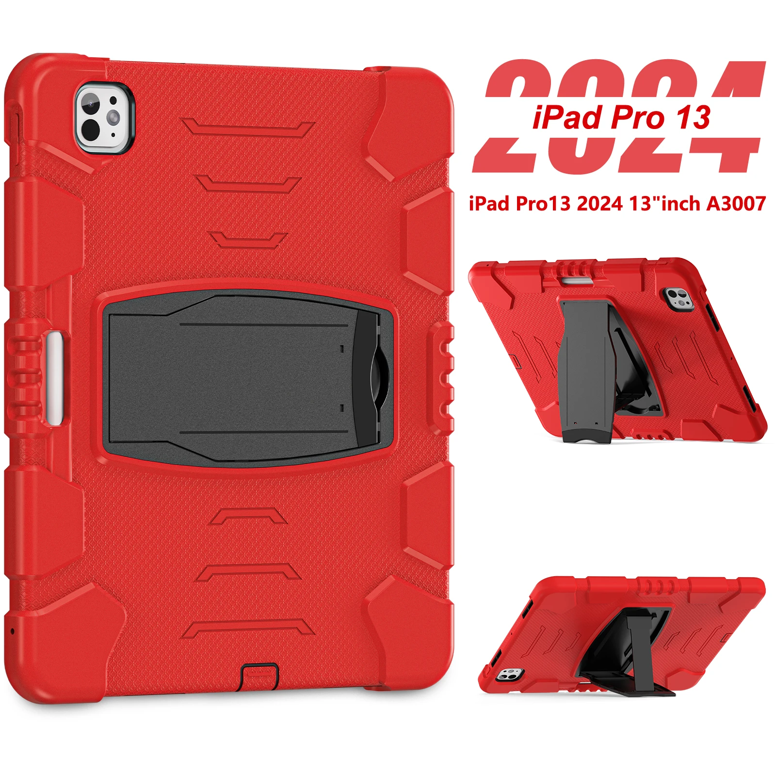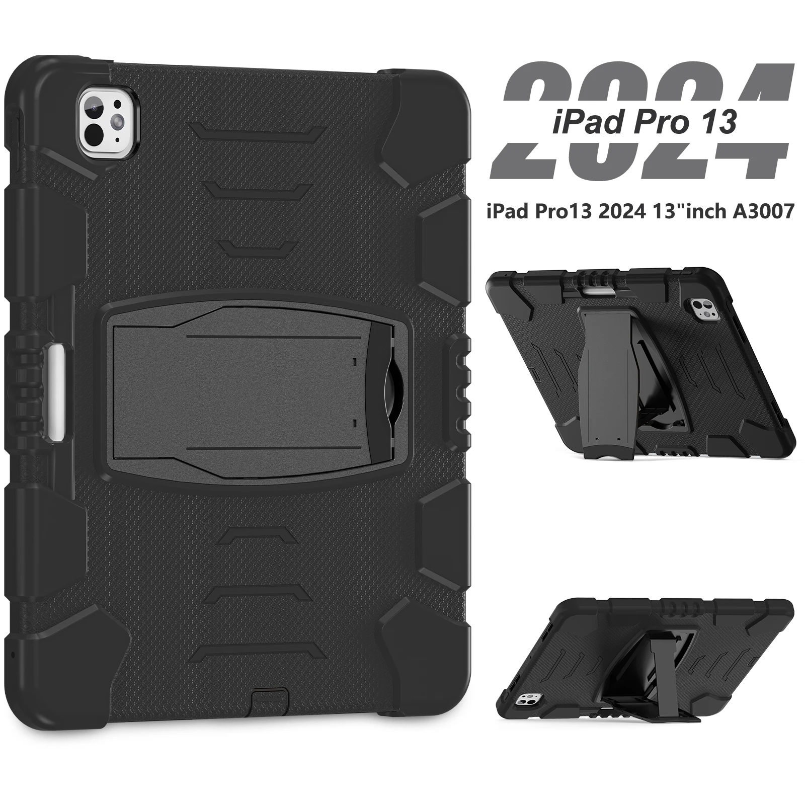 Funda resistente para Apple iPad Pro 13 2024 M4 Modelo A2926 A2925 A3007 Funda con soporte incorporado Antideslizante 3 capas A prueba de golpes