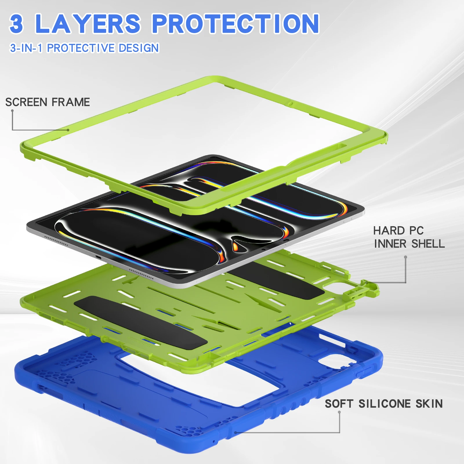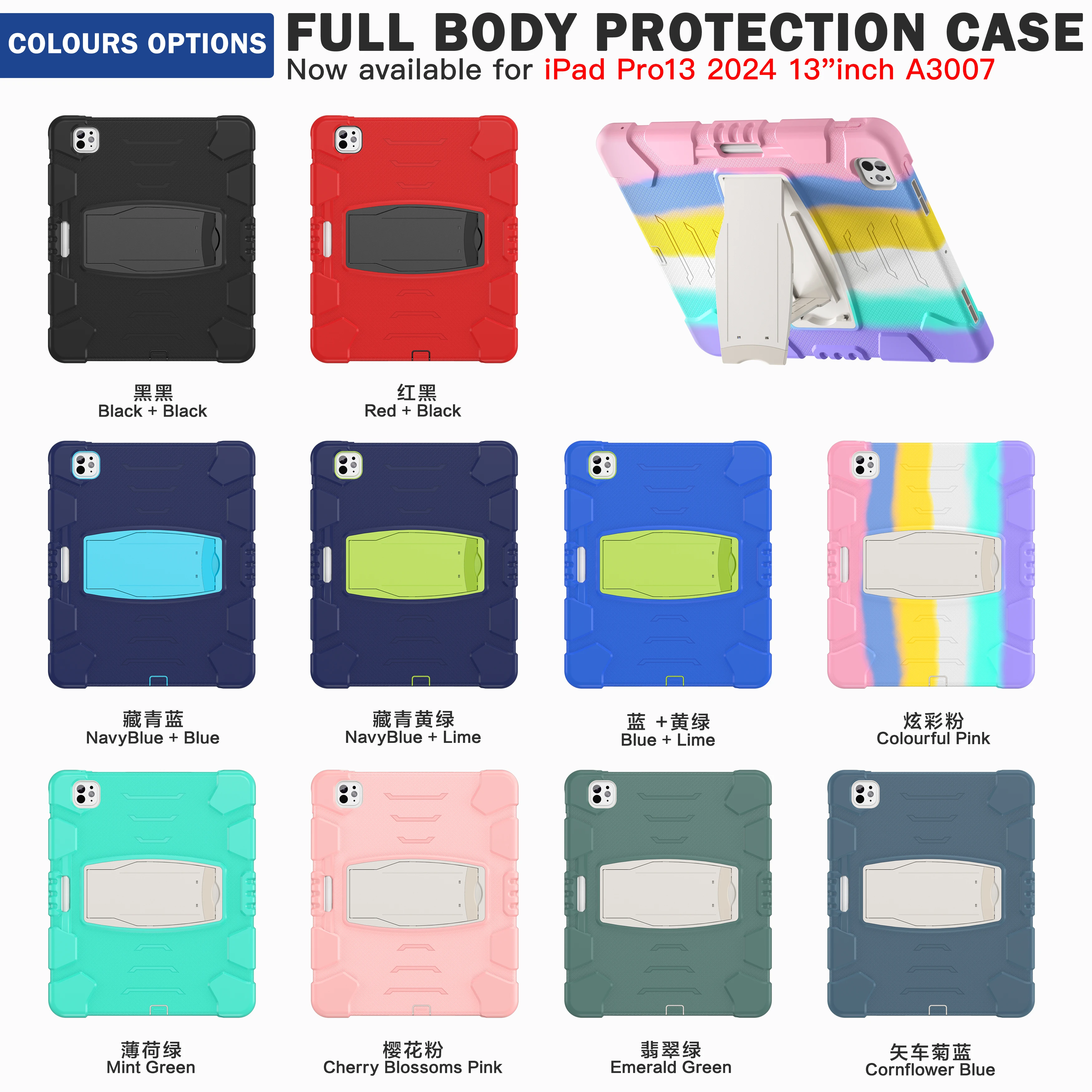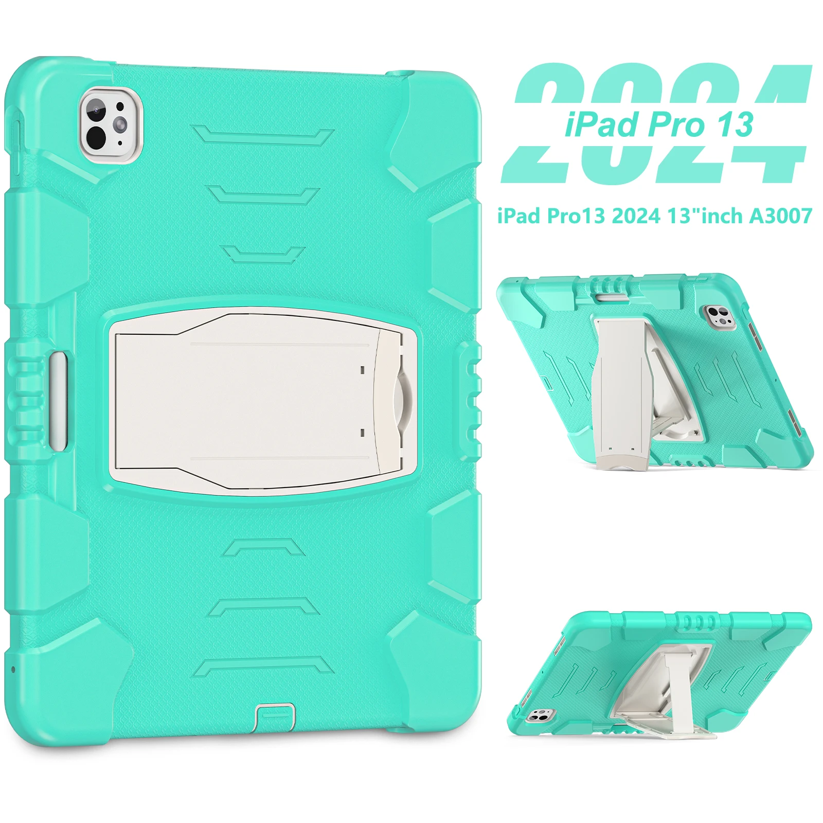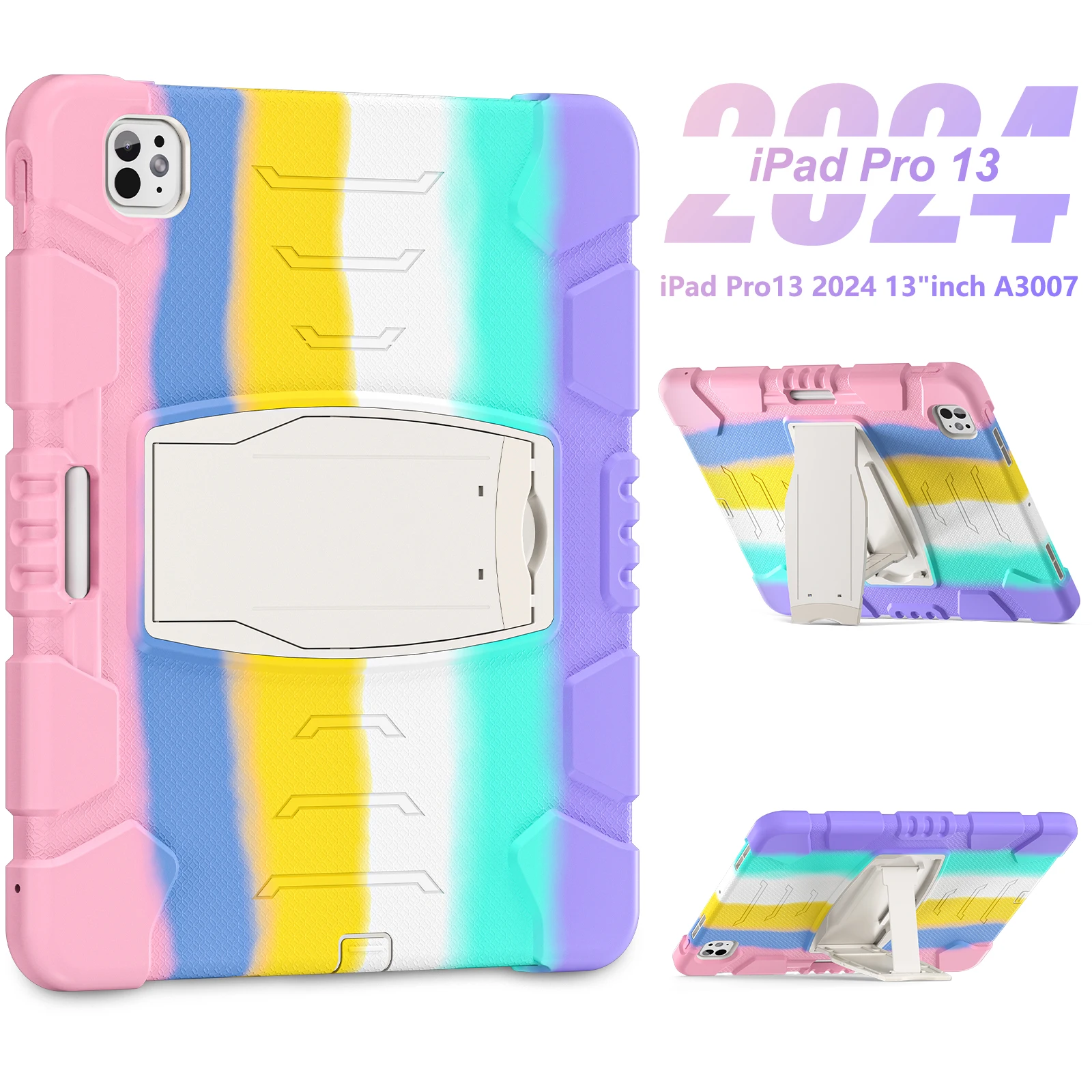 Funda resistente para Apple iPad Pro 13 2024 M4 Modelo A2926 A2925 A3007 Funda con soporte incorporado Antideslizante 3 capas A prueba de golpes