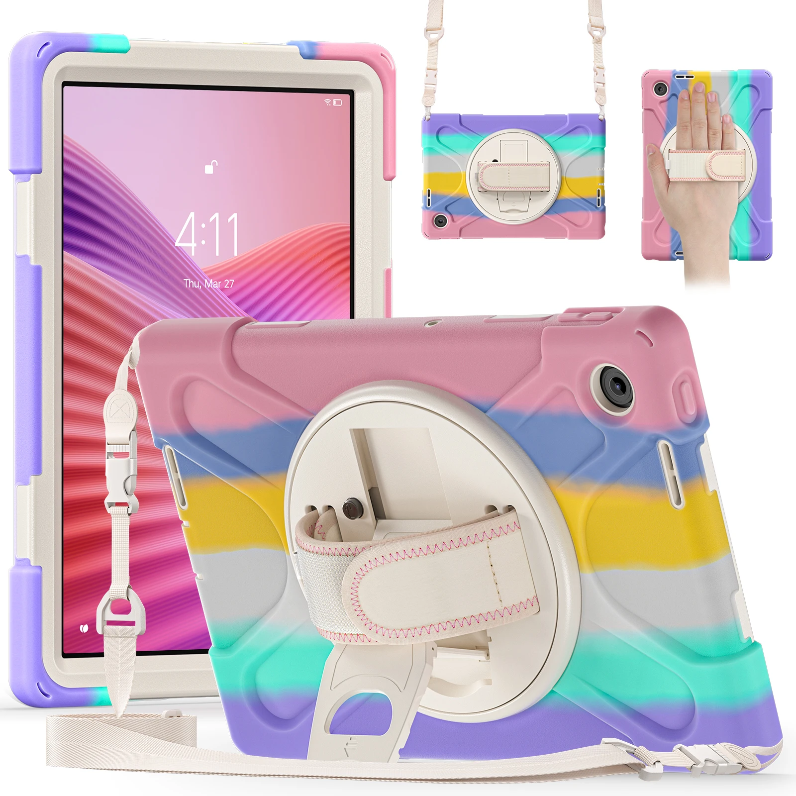 Funda resistente para Lenovo Tab 10,1 pulgadas 2025 K10C TB-311XU TB-311FU 360 soporte giratorio cubierta resistente con correa de mano y hombro