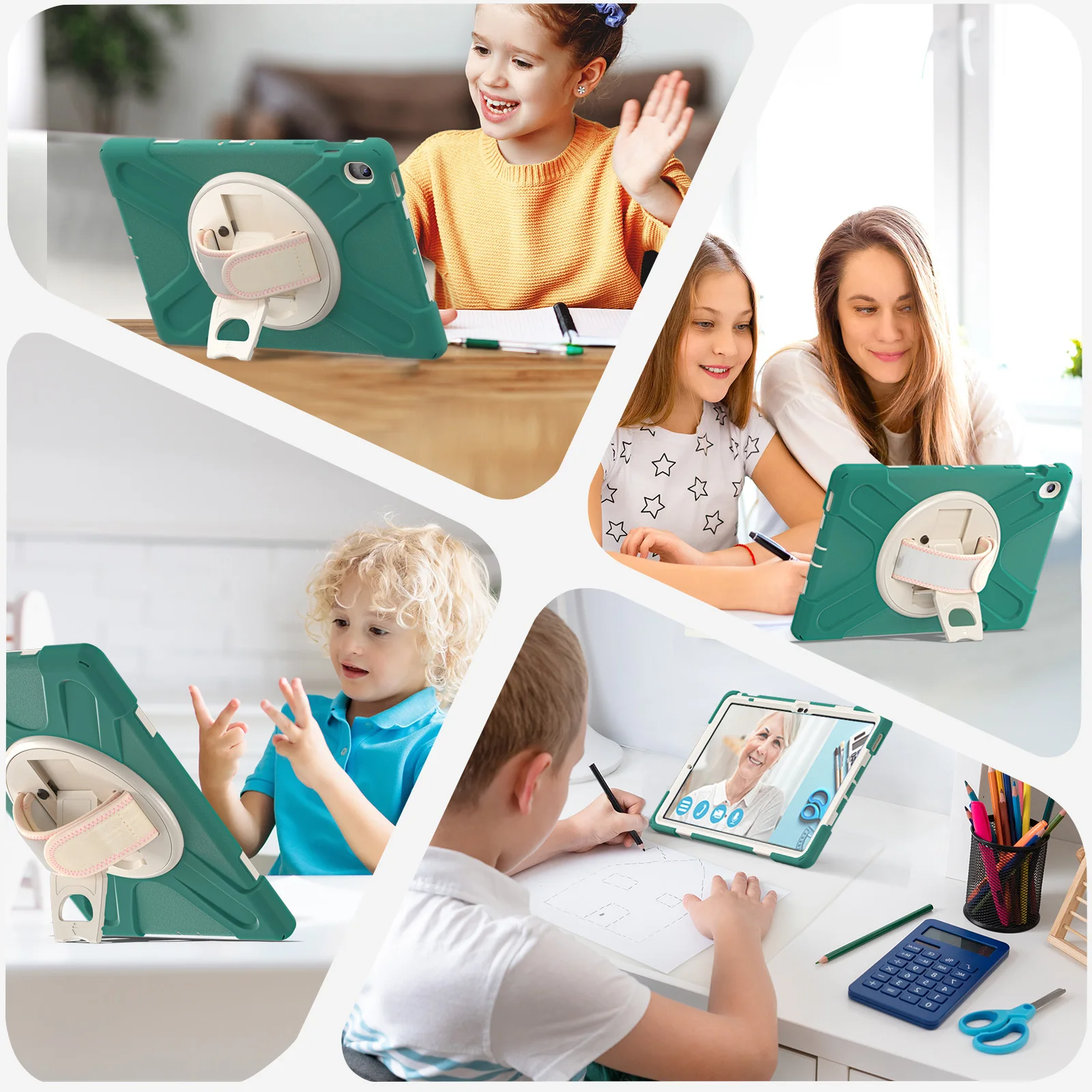2), soporte giratorio de 360 grados y pulsera: el soporte giratorio de 360 grados proporciona un ángulo para ver y escribir;La correa ajustable permite que una mano agarre firmemente la tableta, lo que la hace adecuada para que la utilicen niños, estudiantes, profesores, ingenieros y diseñadores.