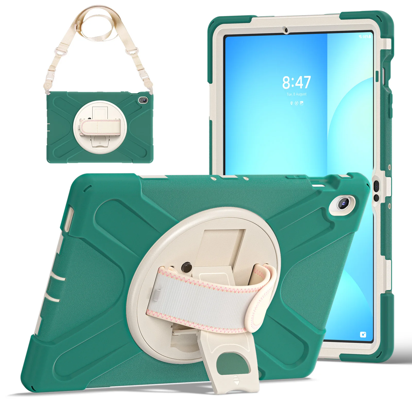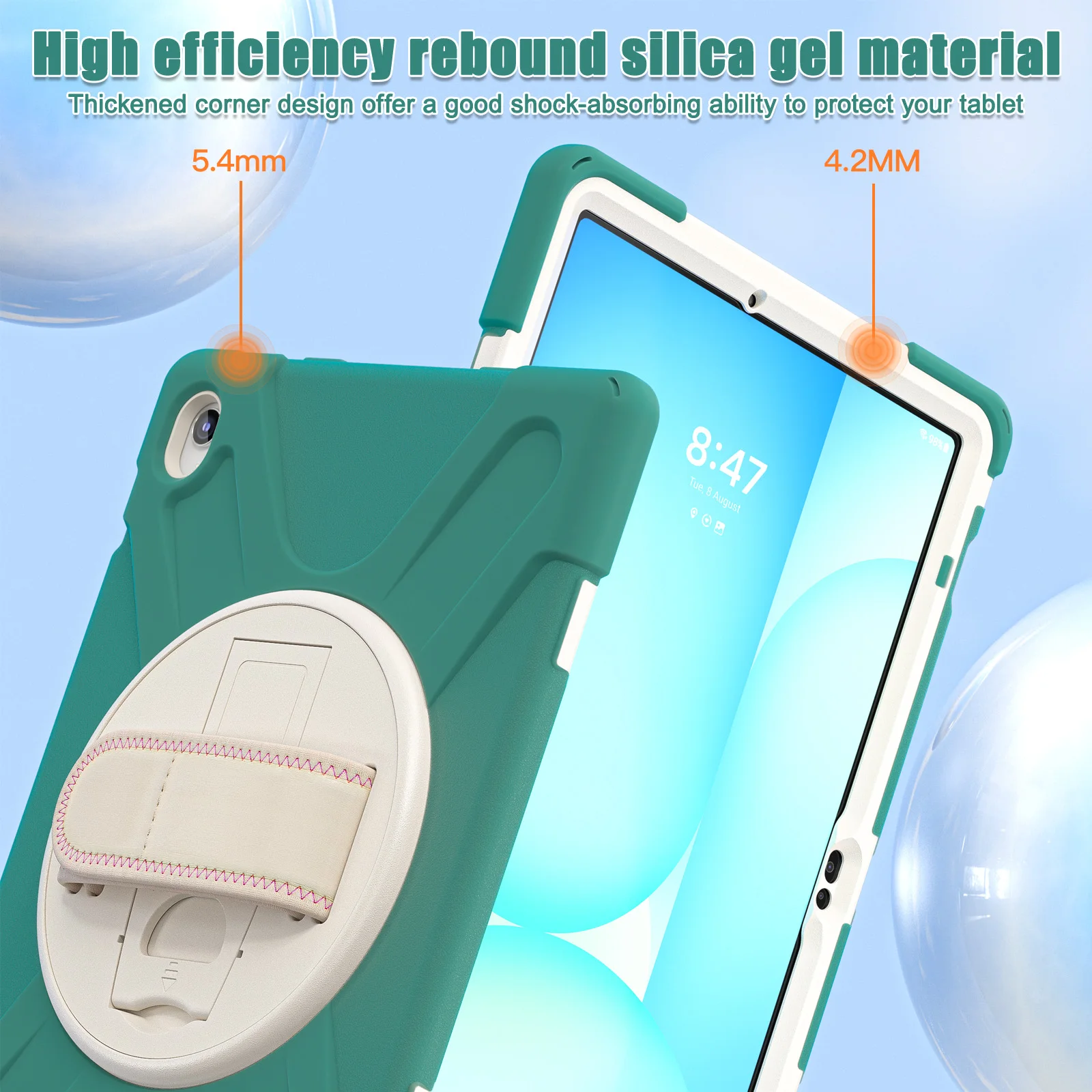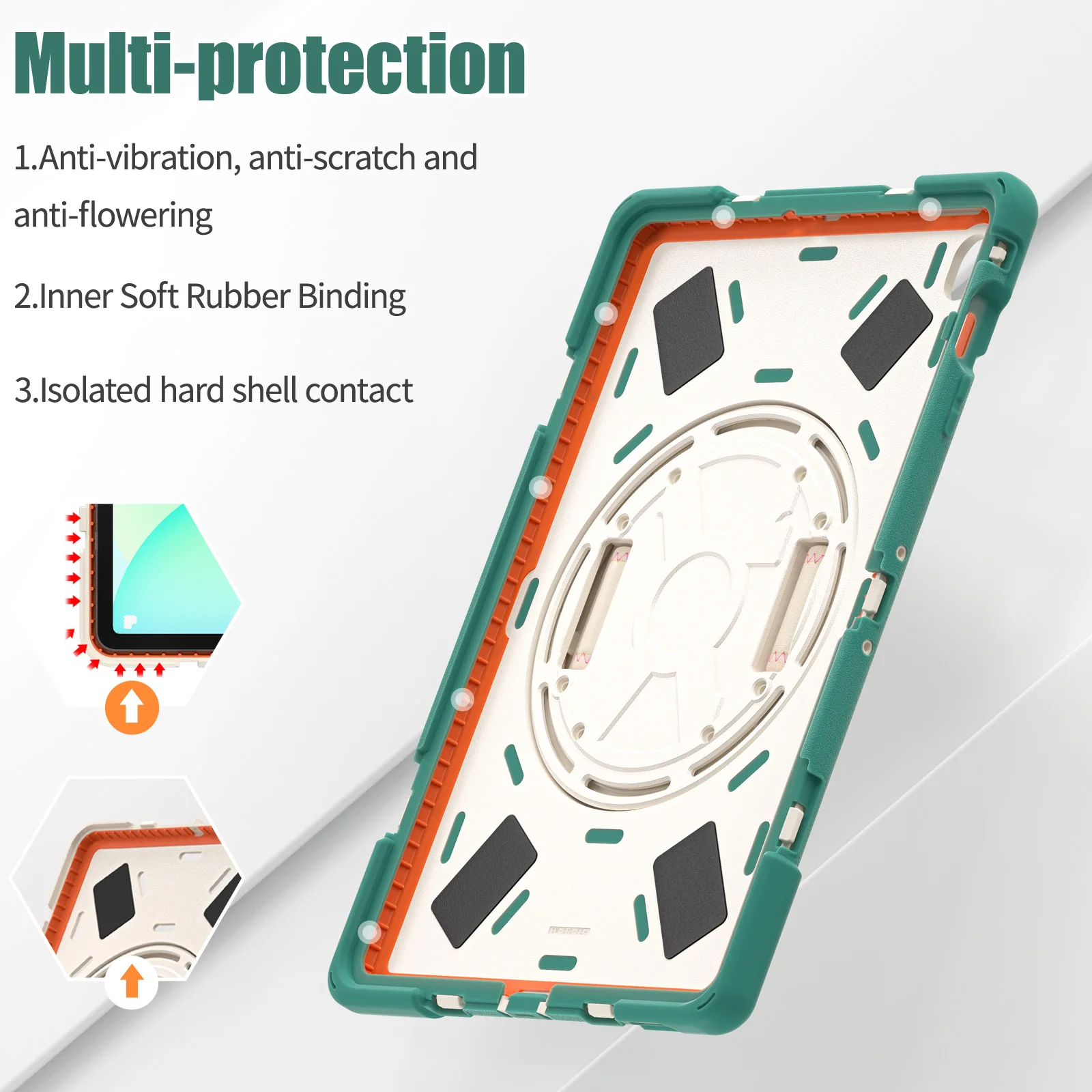 3), Estuche blindado: diseño 3 en 1, interior de PC resistente y cubierta frontal, que protege su tableta contra caídas, daños e impactos.La carcasa de silicona suave proporciona funciones antideslizantes, de protección contra colisiones y colisiones.