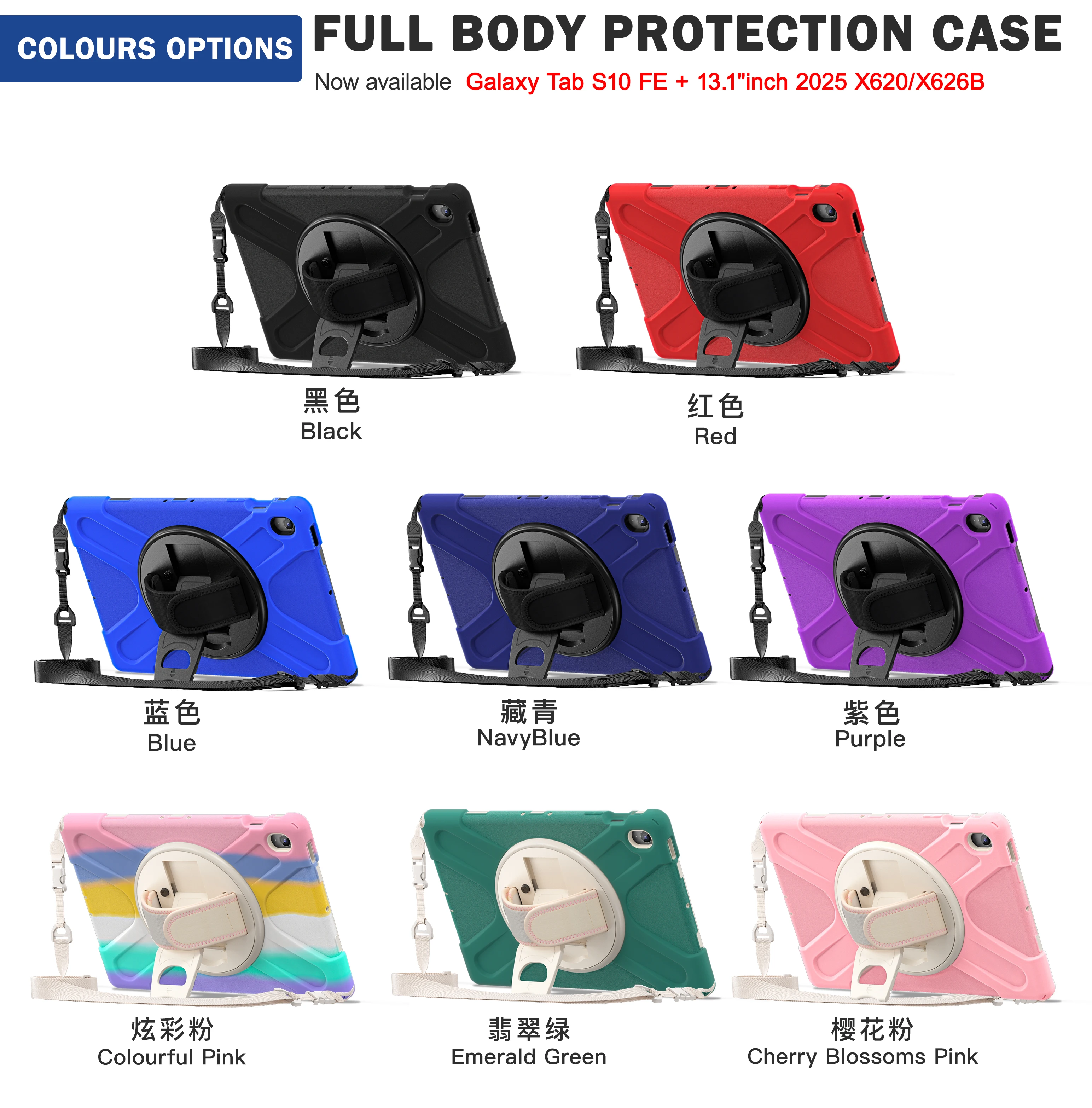 Funda resistente para Samsung Galaxy Tab S10 FE Plus 2025 13,1 pulgadas SM-X620 X626B 360 funda de soporte giratoria con correa para el hombro