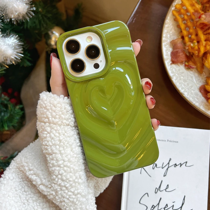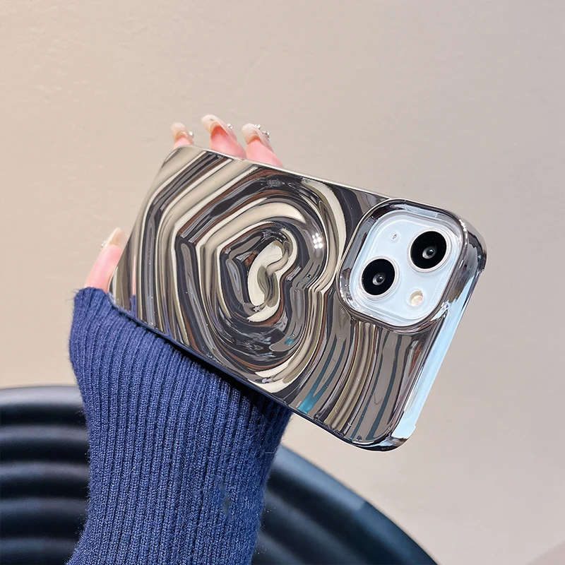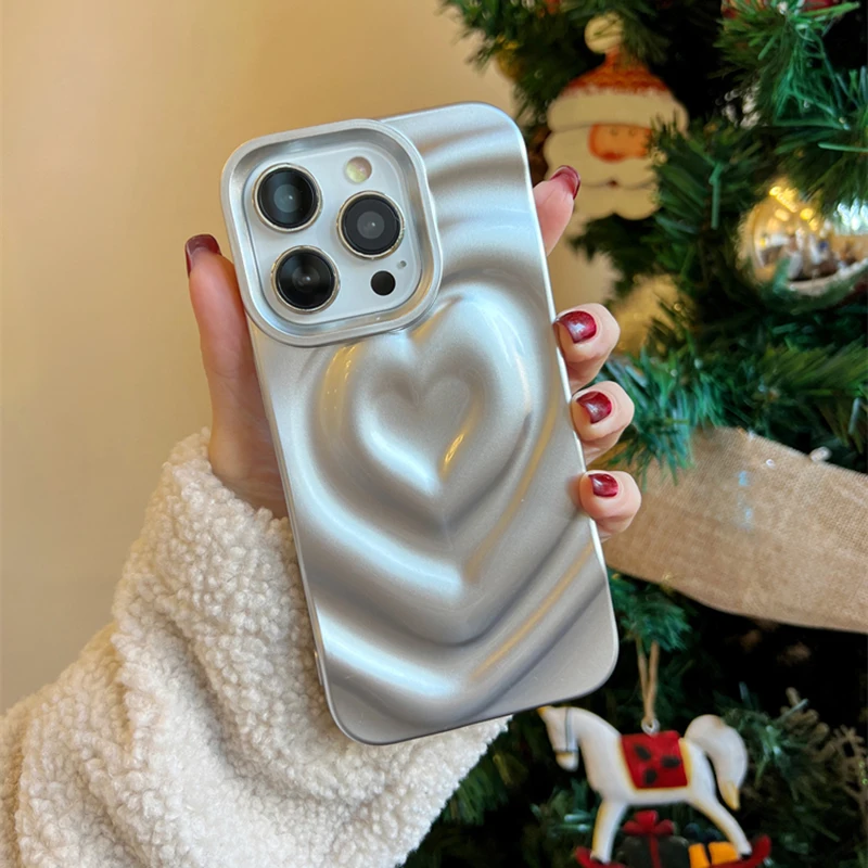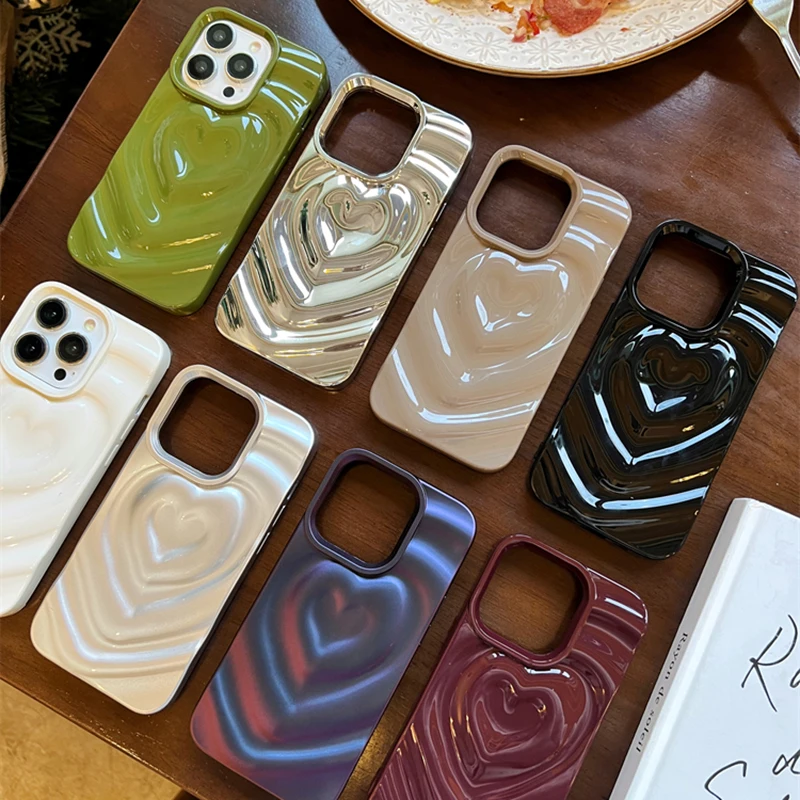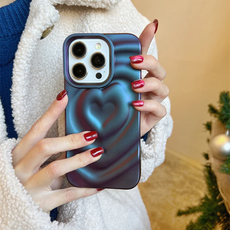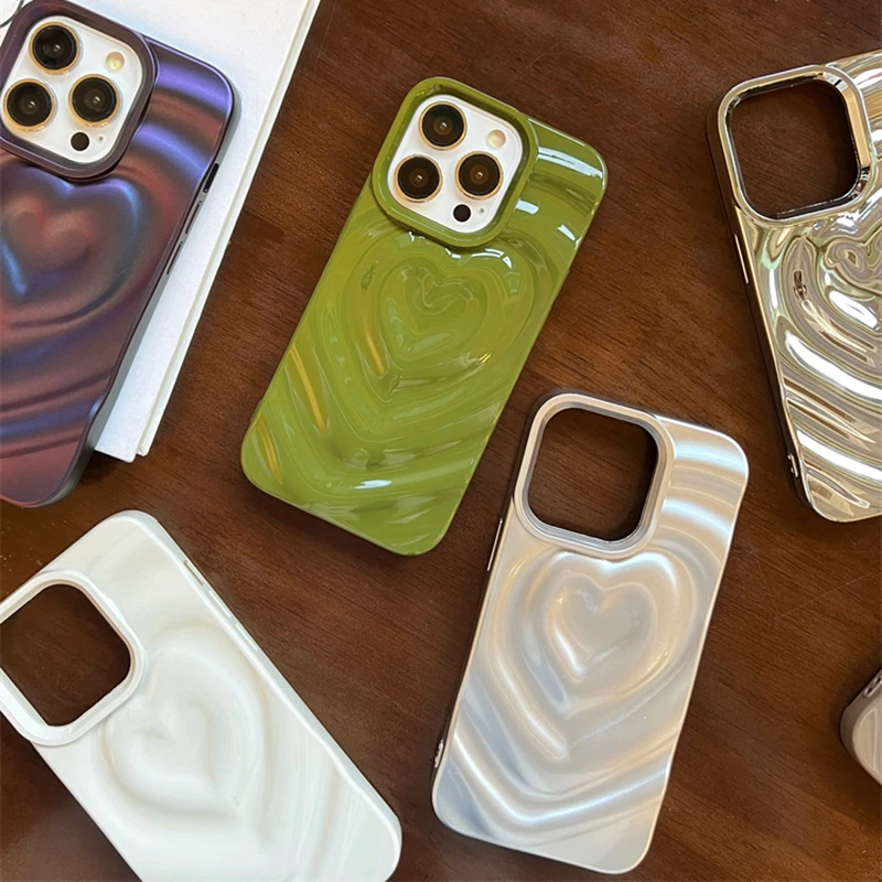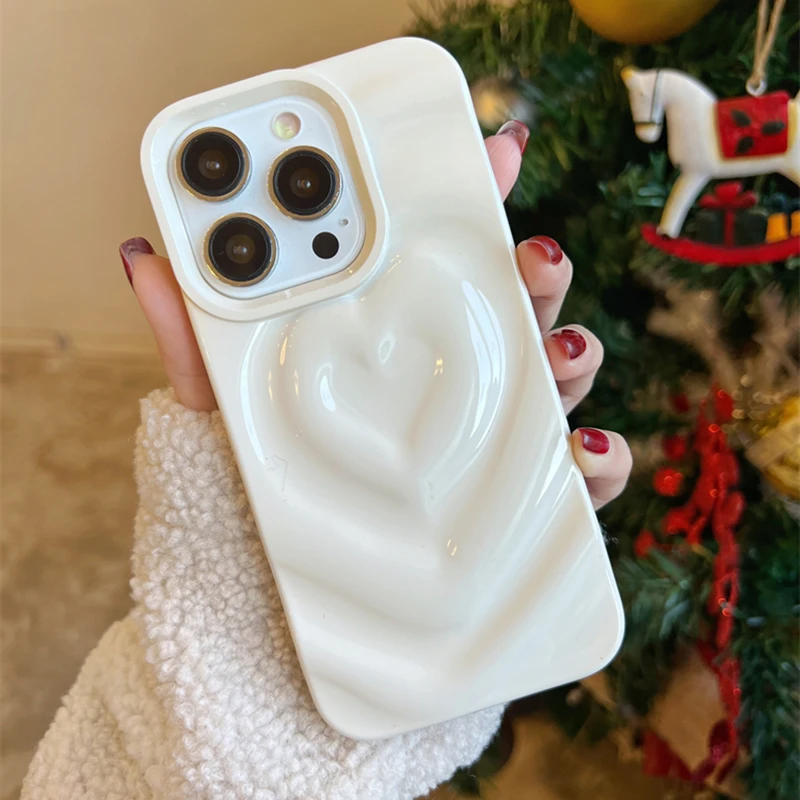 Funda Retro con pliegues 3D y corazón de amor para iPhone 13 11 12 14 15 Pro Max, funda suave de lujo a prueba de golpes, parachoques