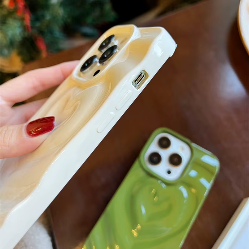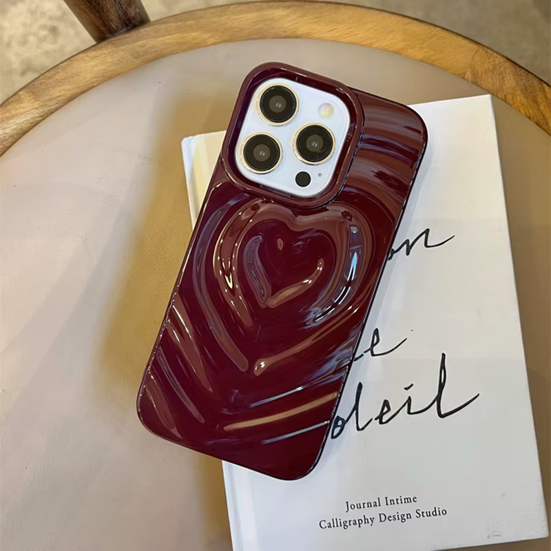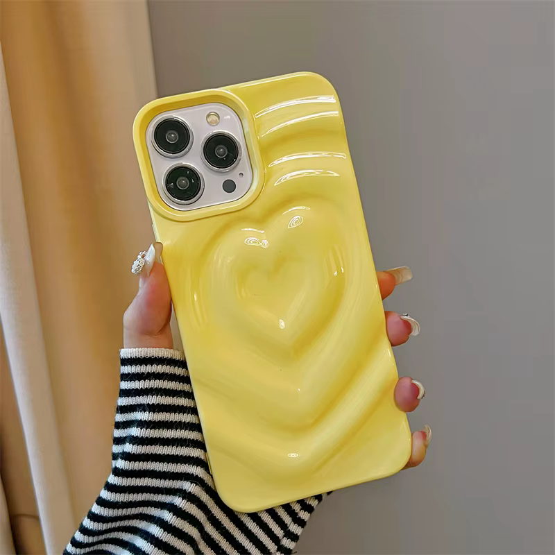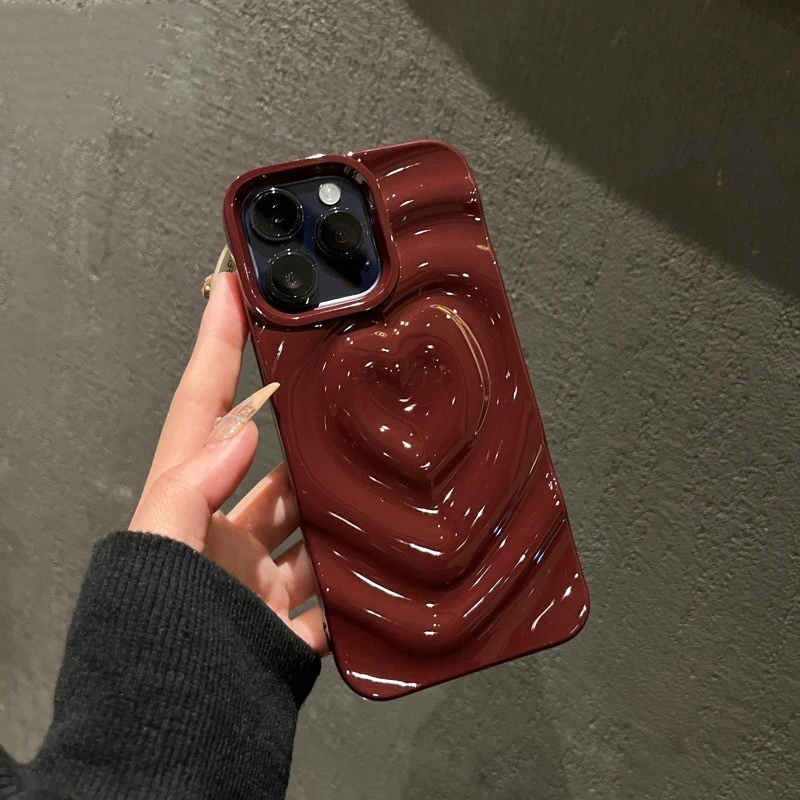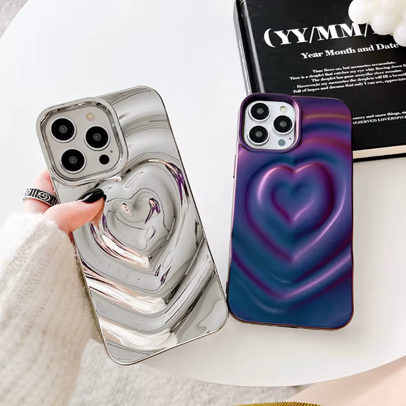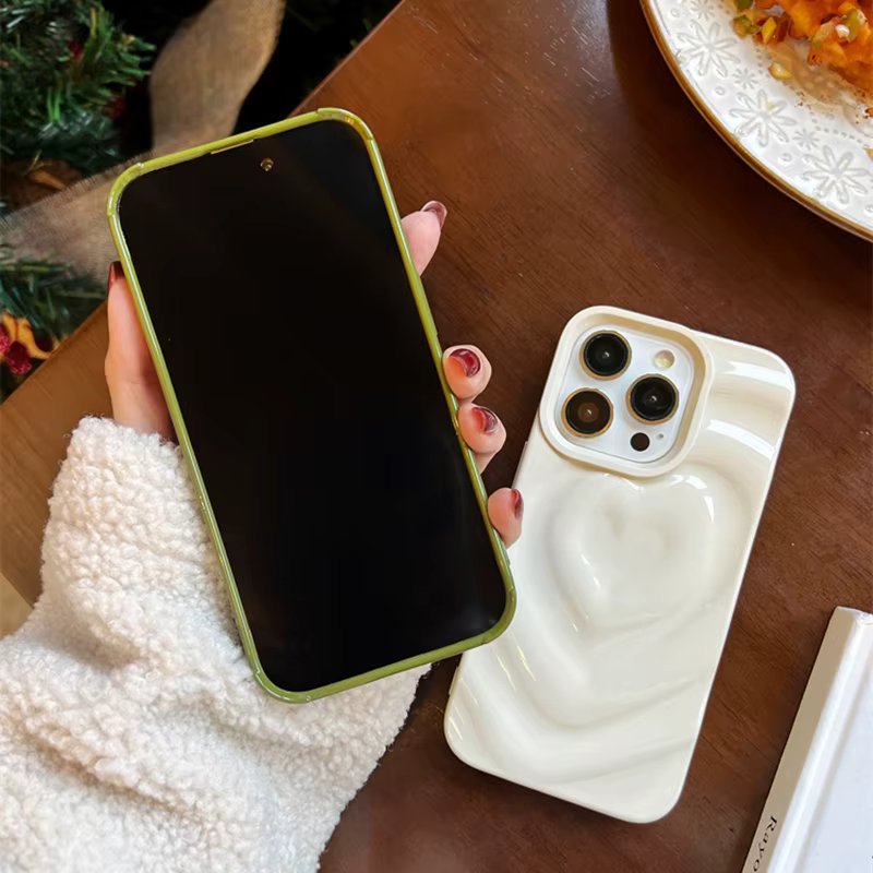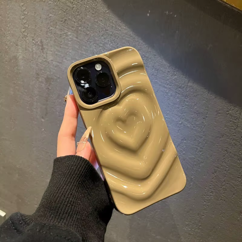 Funda Retro con pliegues 3D y corazón de amor para iPhone 13 11 12 14 15 Pro Max, funda suave de lujo a prueba de golpes, parachoques