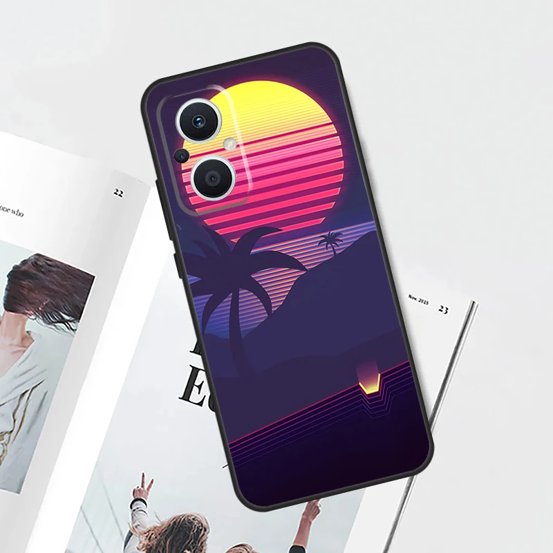 Funda Retrowave de palmas de neón de los años 80 para OPPO Find X9 X5 X6 X8 Pro OPPO Reno 14 13 12 11 10 Pro 14F 13F 12F 7 8 Lite