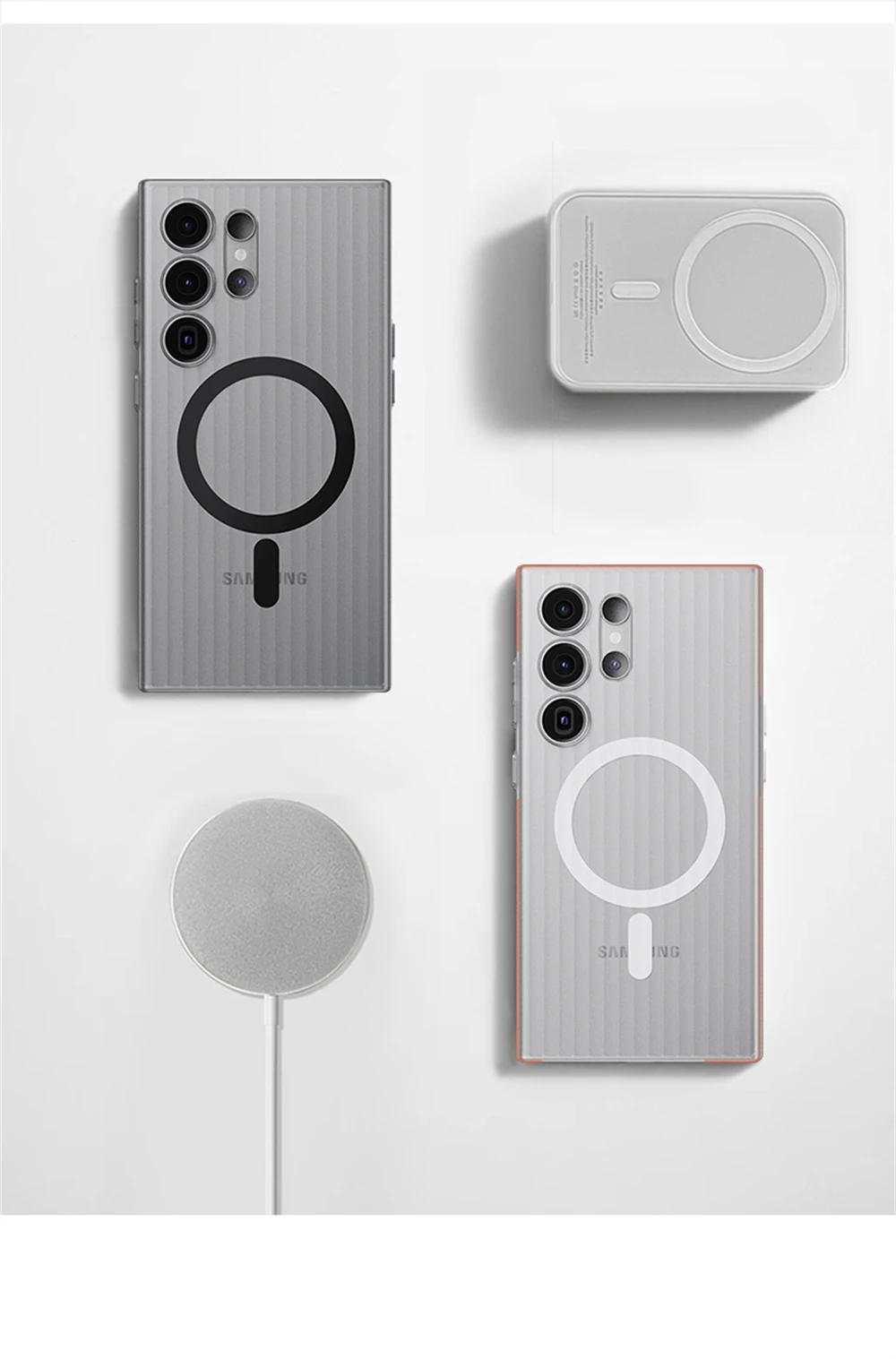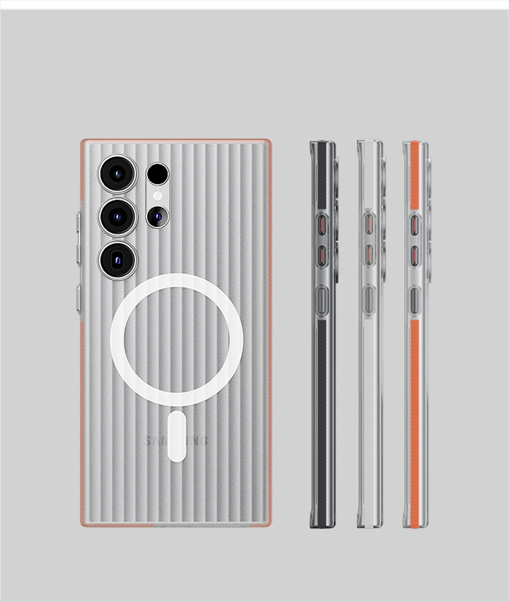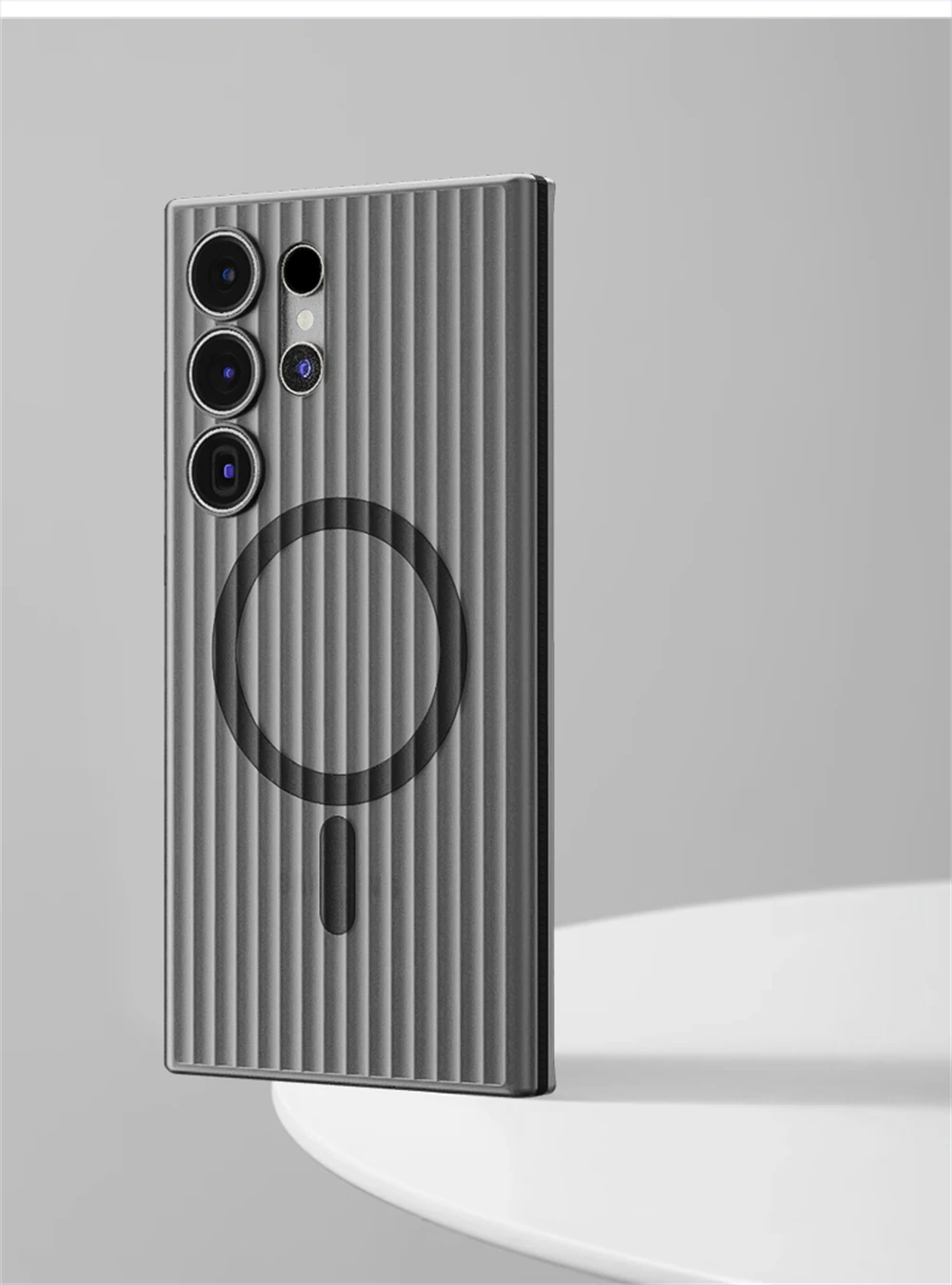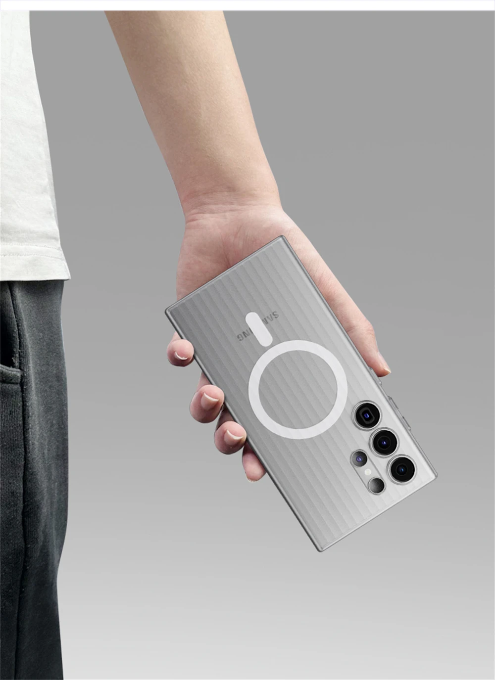 Funda rígida de carga inalámbrica magnética antideslizante con patrón corrugado de lujo para Samsung Galaxy S25 Ultra S24 Plus, funda mate