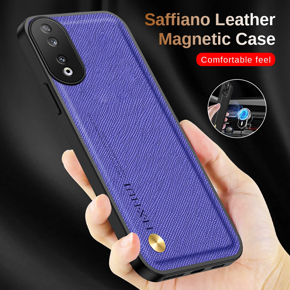 Comprar Funda rígida de cuero para Honor 90, cubierta de lujo de grano cruzado, 90, REA-AN00, 2023, 6,7 pulgadas, protección magnética para cámara de coche