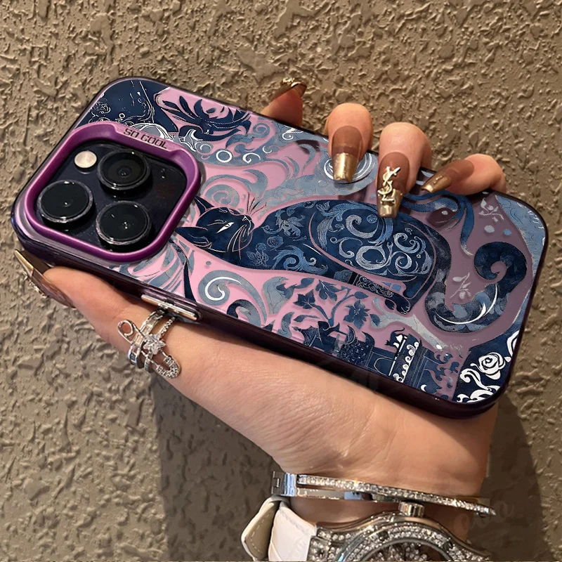 Funda rígida con diseño de gato y flores para Samsung Galaxy, cubierta con tótem artístico para modelos A55, A35, A25, A15, A05, A05S, 5G, A13, A23, A12, A22, A32, A52, A52S, A72, A51, A71, 4G